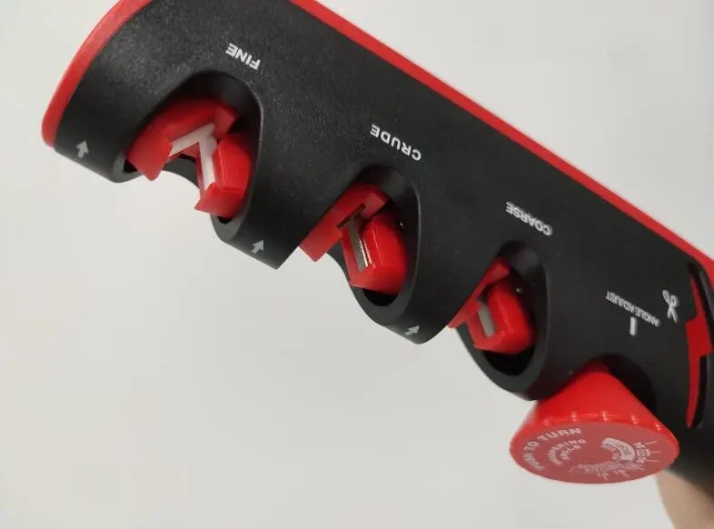 заказ до Москвы шел 6 недель. Функции точилки соответствуют описанию. Однако заточку ножниц делать неудобно, т. к. степень зажима зависит от чуткости пальцев. Регулировка угла и заточка ножей достаточно удобны, в инструкции приведены углы заточки ножей для большого количества фирменных ножей, в том числе нестандартных.