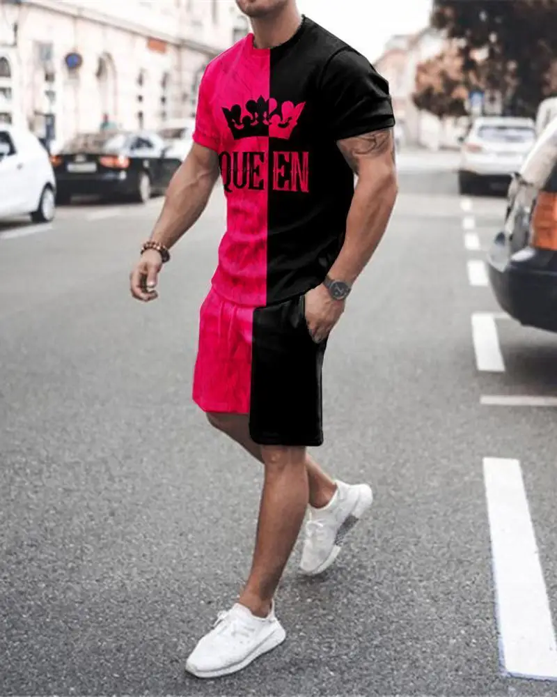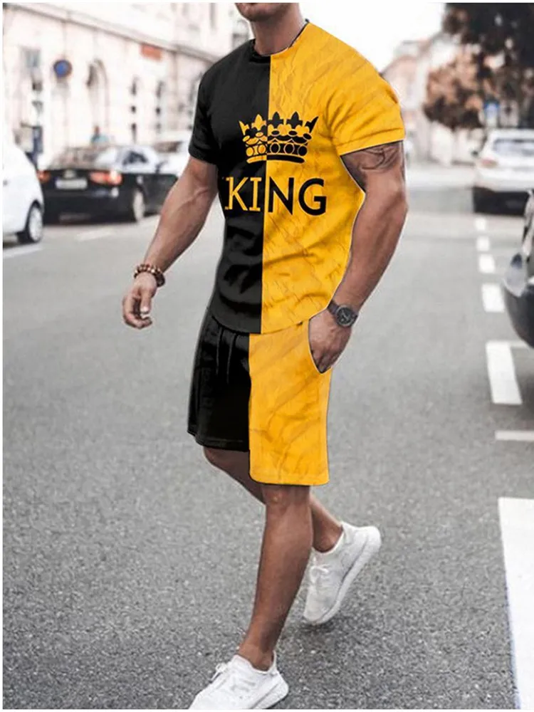 Футболка и шорты мужские и женские, градиентная строчка с 3d-короной, круглый вырез, модная одежда и спортивная одежда