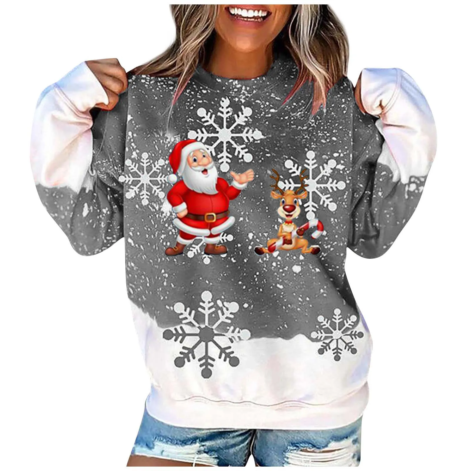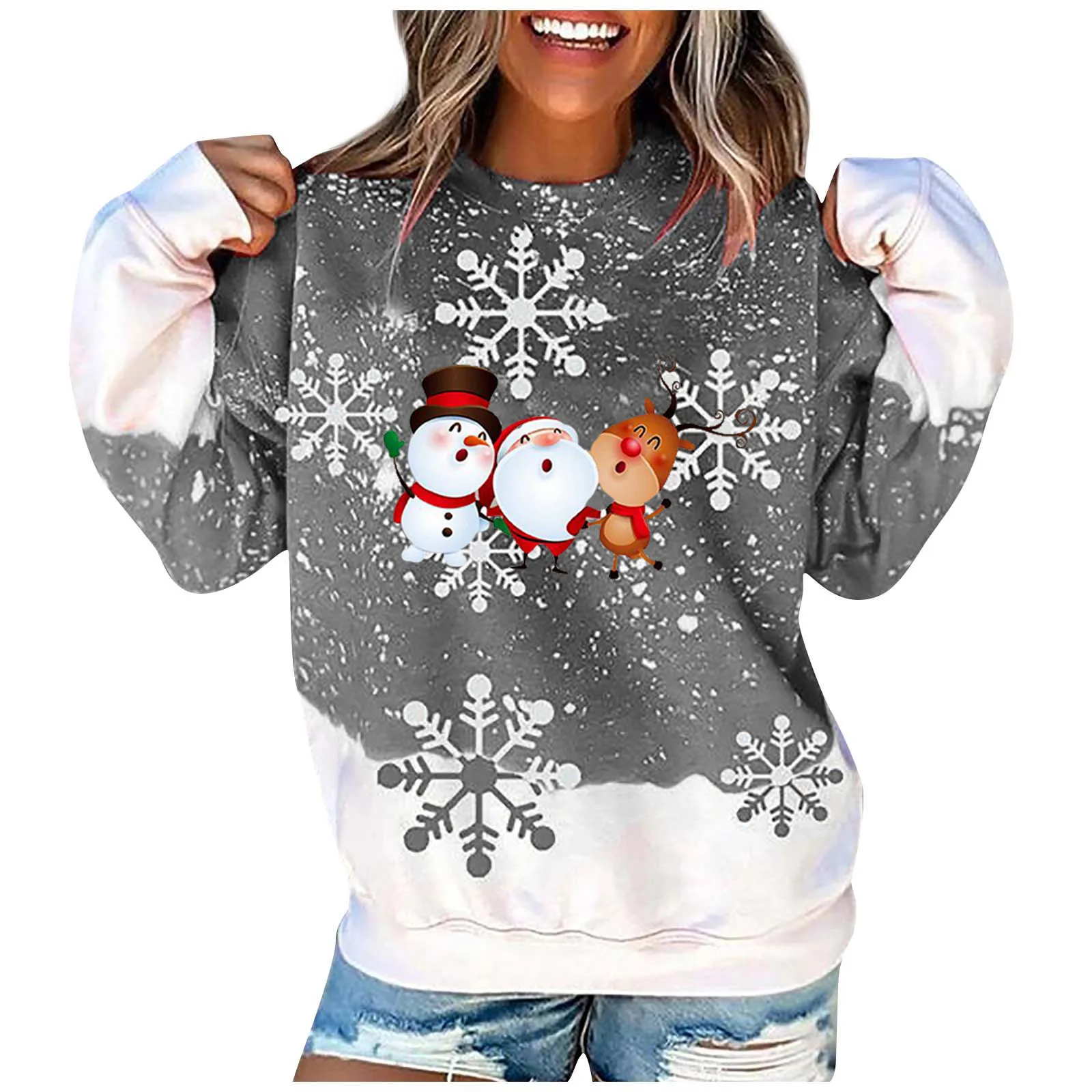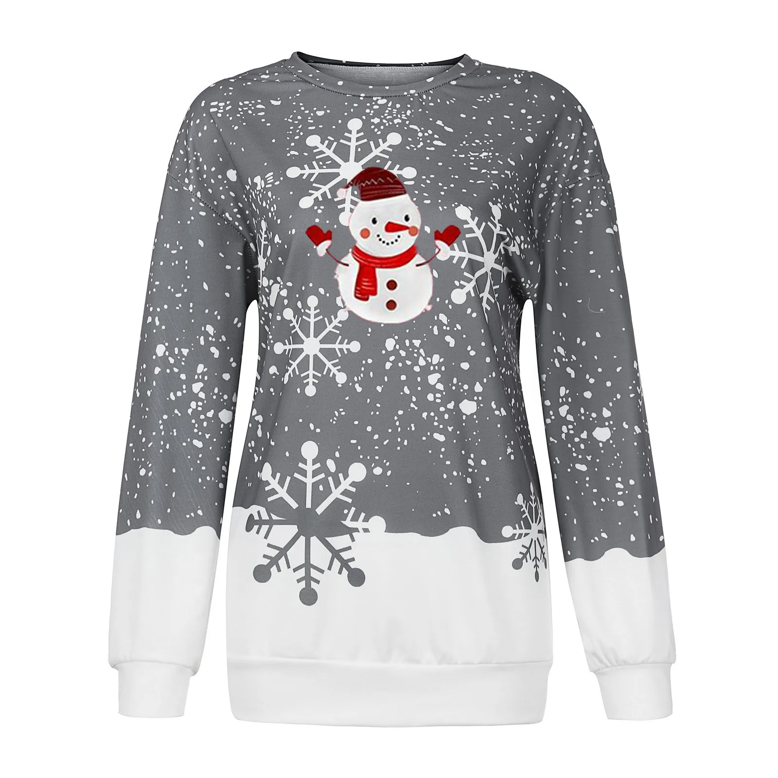 Женская толстовка с принтом в виде снежинок, с круглым вырезом и дл...