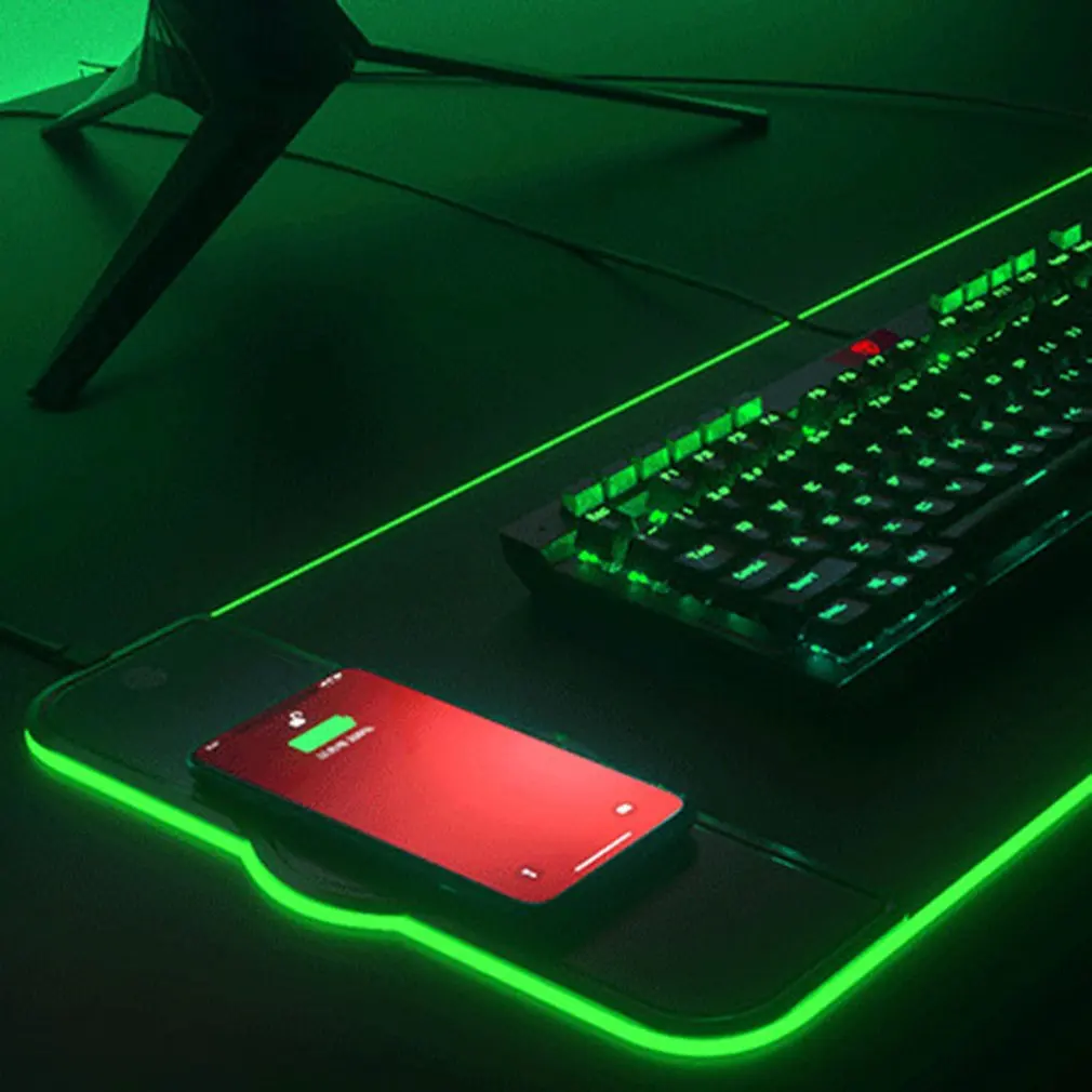 Особенности: 1. Беспроводная зарядка Qi 10 Вт: встроенная беспроводная Быстрая зарядка 10 Вт, совместимая со смартфонами, поддерживающими беспроводную зарядку 800x300x4 мм, расширенный коврик для мыши GIM обеспечивает большую полезную область для покрытия клавиатуры, мышь и другие материалы на рабочем столе во время игр или работы в офисе. 2. 10 светильник режимы: супер-светящей по индивидуальному заказу 10 светильник ing режимов, включая 7 статический светильник режима и 3 динамических режима, который предлагает особую атмосферу во время игры или работы. С супер гладкой поверхностью, точной и контролируемой поверхностью. 3. Гладкость: обеспечивает оптимальную поверхность для игровых датчиков и меньшее сопротивление, чем другие коврики для мыши. 4. Толщина: 4 мм (ткань), нескользящая основа, эта коврик для мыши надежно держится на столе и обеспечивает плотное сцепление. Профессиональная прострочка кромок в сочетании с водонепроницаемым материалом предотвращает Потертость и обеспечивает более длительный срок службы. 5. Портативность: данный товар маломерит на размер и светильник по весу, что очень удобно носить с собой. Описание: Изготовлен из прочного материала, этот коврик для мыши имеет светильник, идеально подходит для игры в компьютер. Характеристики: Размер:800*300*4 мм Интерфейс питания: USB (поддержка QC3.0 или 3,0) Выход мощность: 5 Вт/7,5 Вт/10 Вт Вход напряжение: 5V/2A 9,0 V/1.67A Частота зарядки: 100k-205 кГц Частота разговоров: > 80% Требования: 9,0 в/2A зарядная головка может достичь функции быстрой зарядки 10 Вт Материал изделия: АБС-пластик Compatlible devies: все Ql стандартные беспроводные зарядные устройства Посылка включает в себя: 1 шт. * Беспроводная зарядка RGB коврик для мыши