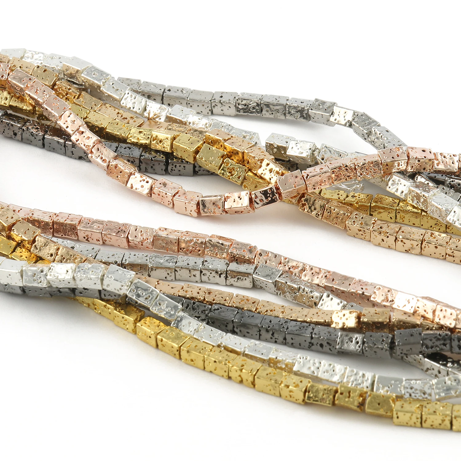 Квадратные бусины из гематита и лавы 4 Х6 мм, черный и серебряный куб, свободные бусины из вулканического камня для изготовления ювелирных изделий, браслетов, аксессуары сделай сам