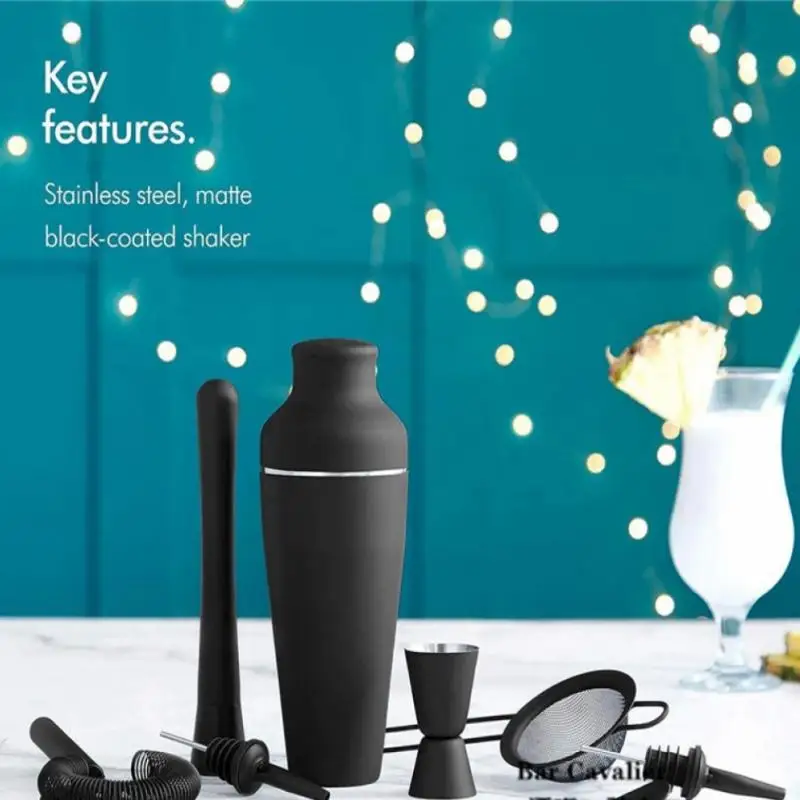 Горячая Распродажа 8 шт.компл. матовый черный шейкер для коктейлей из нержавеющей стали набор микшеров для напитков барный набор для просмотра барные принадлежности