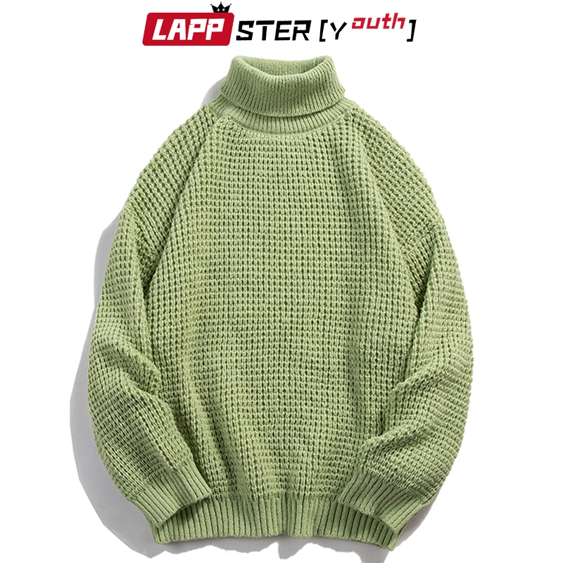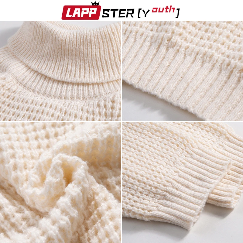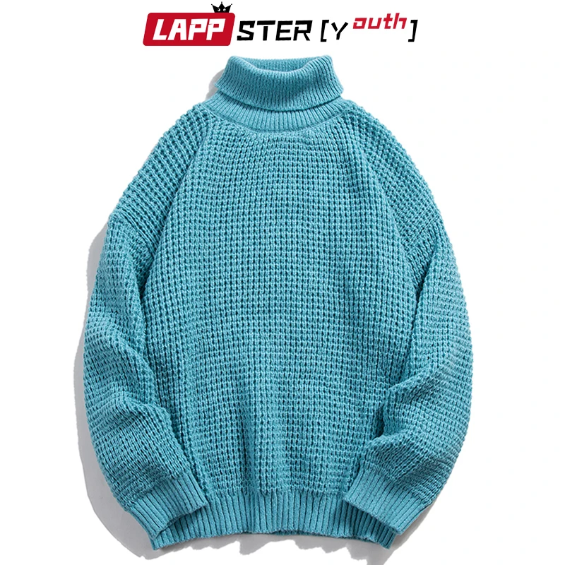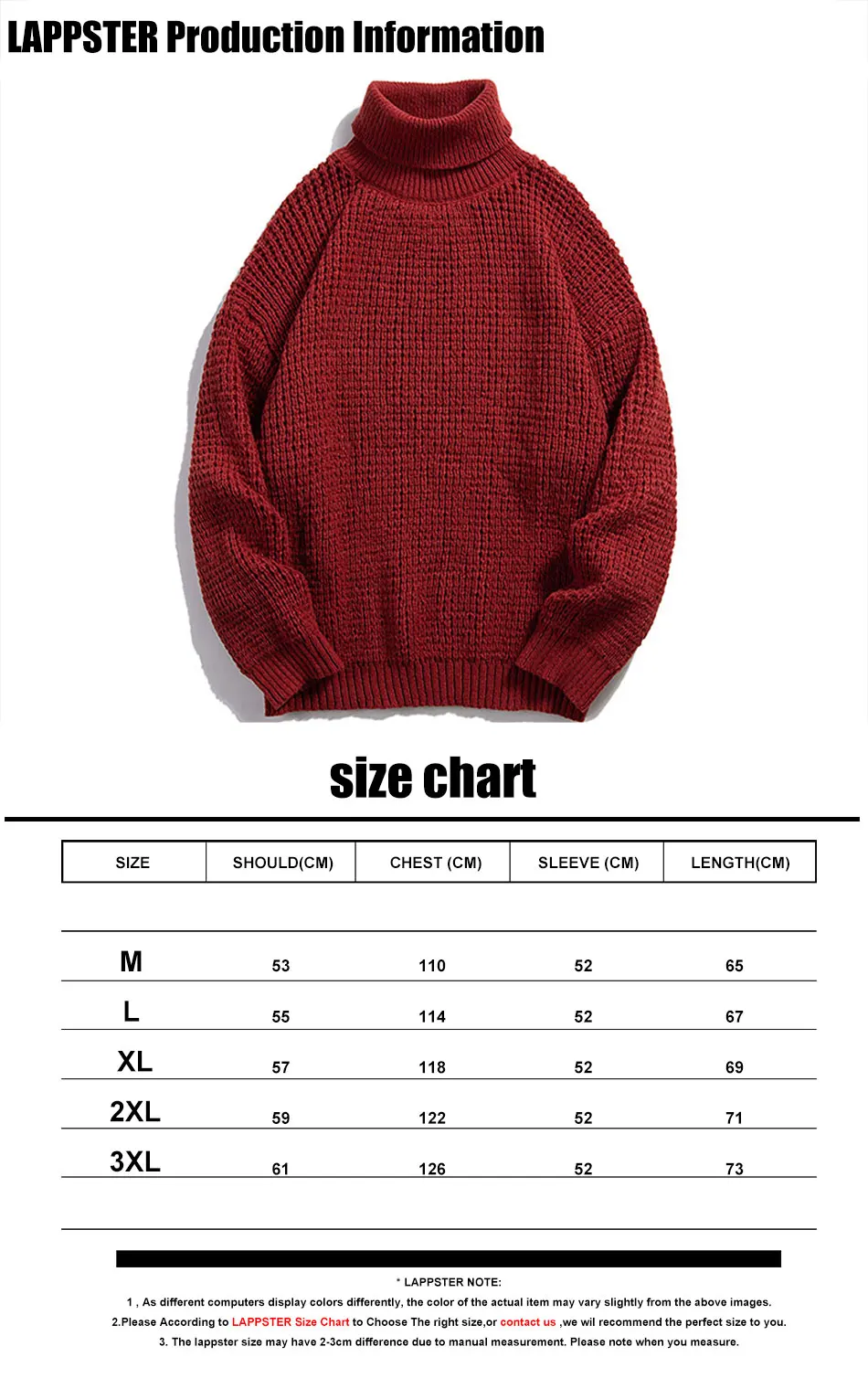 Мужской свитер-водолазка LAPPSTER-Youth в стиле Харадзюку, 2022, мужской красочный вязаный свитер, мужские винтажные толстые пуловеры оверсайз