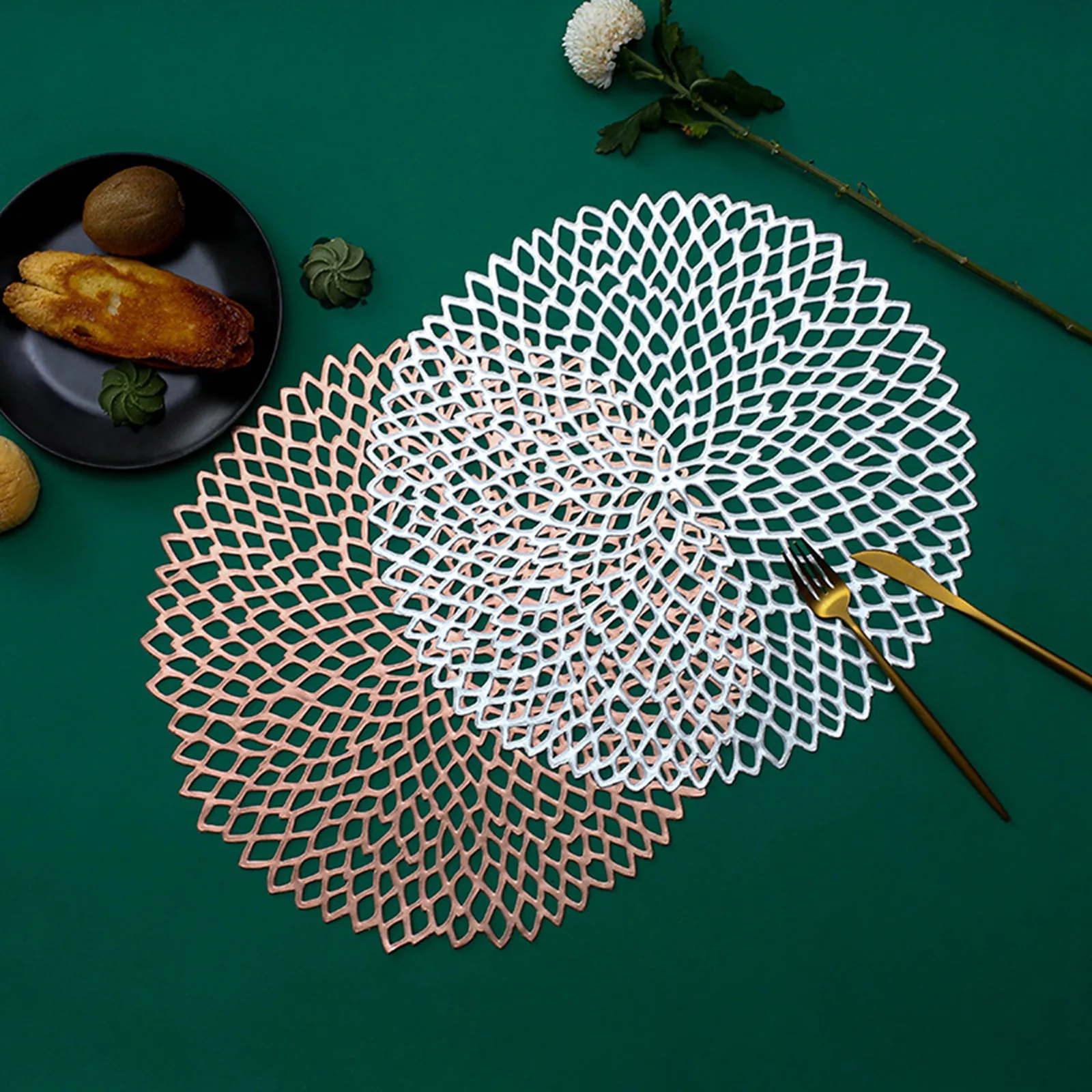 Коврик для стола, коврик из ПВХ с вырезами, теплоизоляционный коврик, декоративные инструменты для дома, магазинов, золотой, серебристый, розовый, золотой