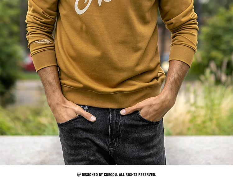 KUEGOU осенние толстовки, модная одежда, мужские свитшоты, джоггеры...