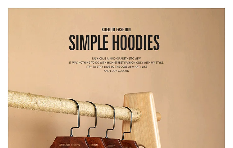 Мужская хлопковая толстовка с капюшоном KUEGOU, черная толстовка с ...