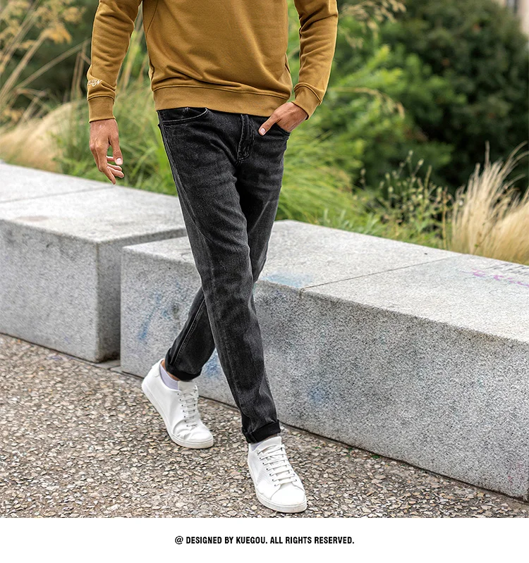 KUEGOU хлопчатобумажная одежда мужские рубашки стильное джинсовое п...