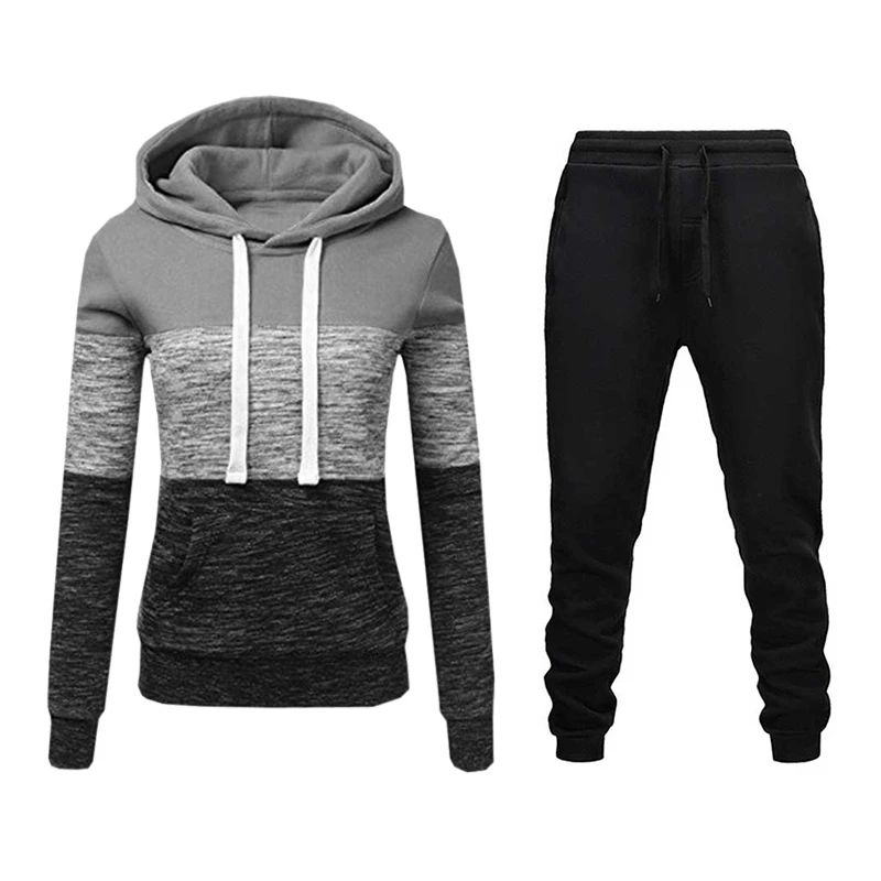 Осенне-зимний женский комплект с капюшоном, женский спортивный костюм, свитшот для бега и бега, пуловер с капюшоном и длинные брюки, комплект из двух предметов