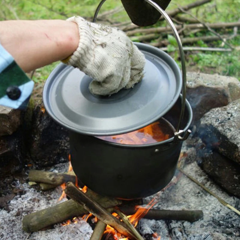Походная посуда на 4 л, посуда для отдыха на открытом воздухе, подвесная кастрюля на 3-6 персон, оборудование для пикника, приготовления пищи, туризма, рыбалки