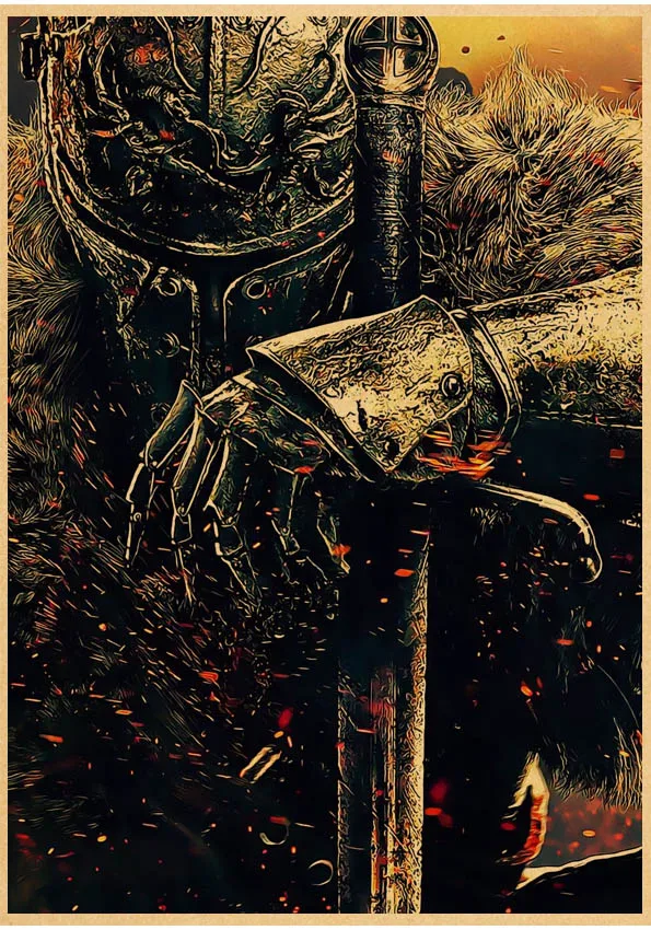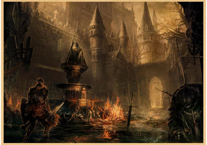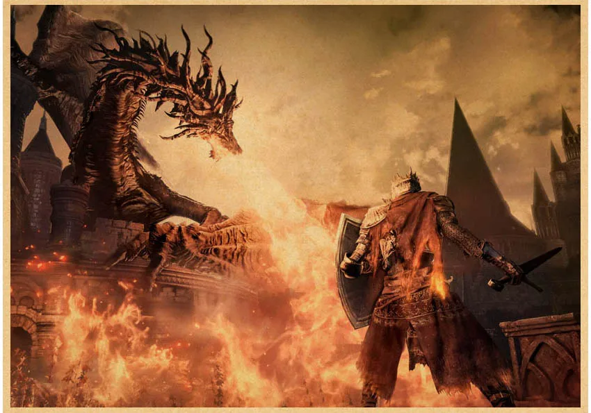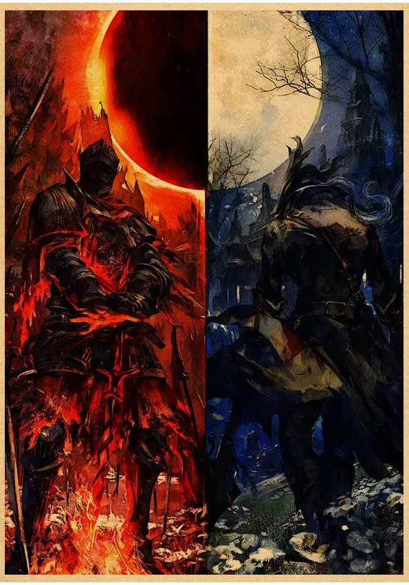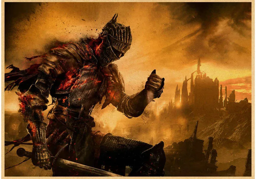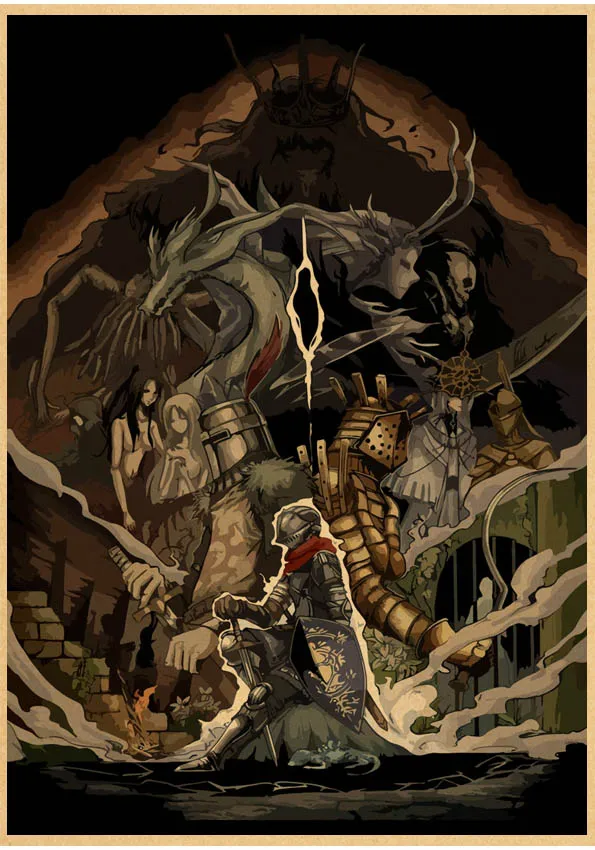 Постер в классическом стиле с изображением темных душ 3 в стиле ретро, Холщовый постер с HD-печатью для игровой комнаты, украшение для детской комнаты, Настенная Наклейка o552