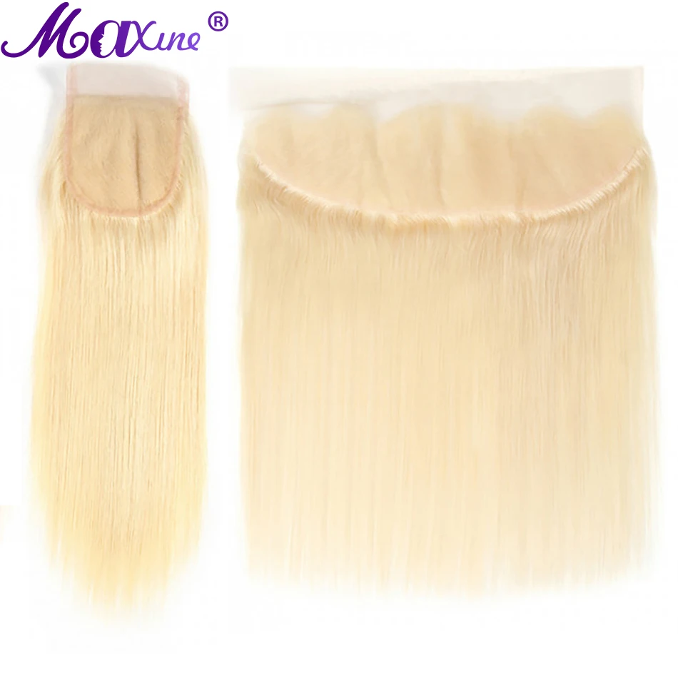 Maxine 613 блонд кружево Фронтальная застежка 10А бразильские прямые человеческие волосы 13x4 4x4 дюйма HD Прозрачная Кружевная застежка Отбеленный узел
