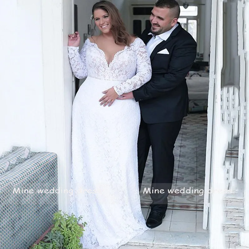 Модное свадебное платье с V-образным вырезом и длинными рукавами