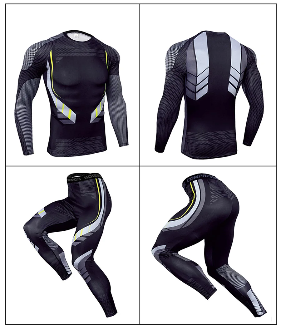 Лыжный спортивный костюм мужской, костюм для фитнеса и бега, тренировочные костюмы для MMA, быстросохнущее компрессионное нижнее белье, костюм для бега