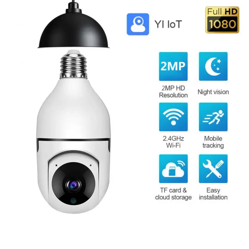 Лампочка E27, Wi-Fi, PTZ, инфракрасная, ночная, двусторонняя связь, радионяня, автослежение, поддержка TF-карты для домашней безопасности