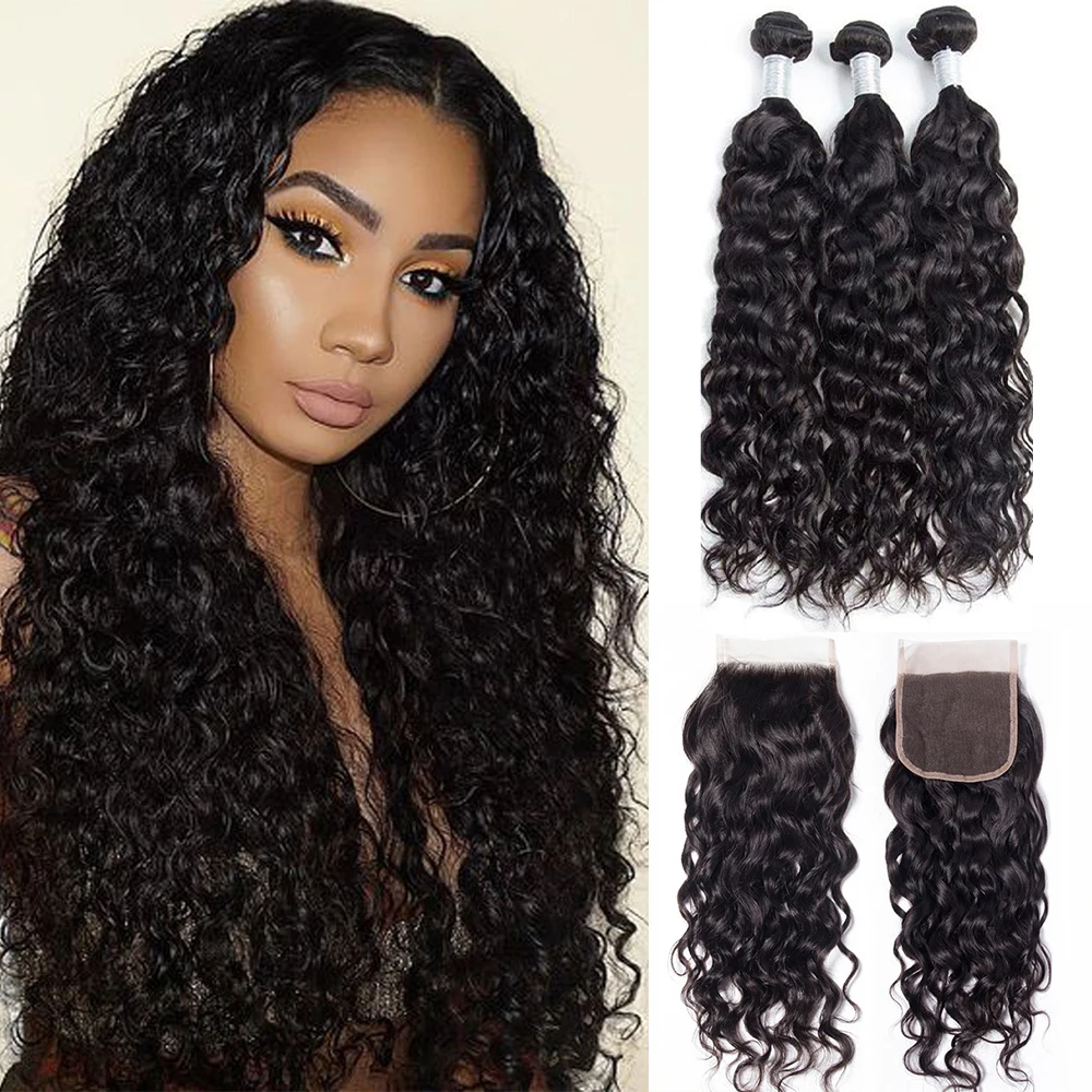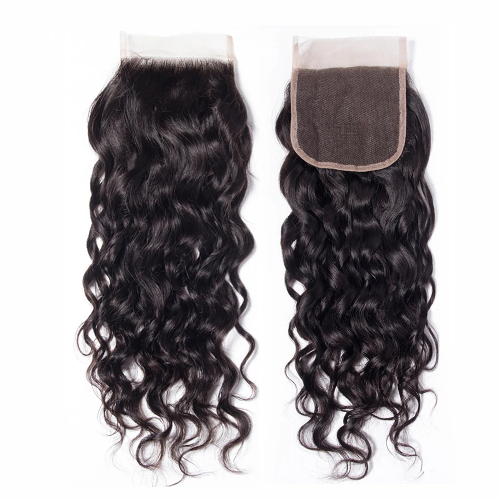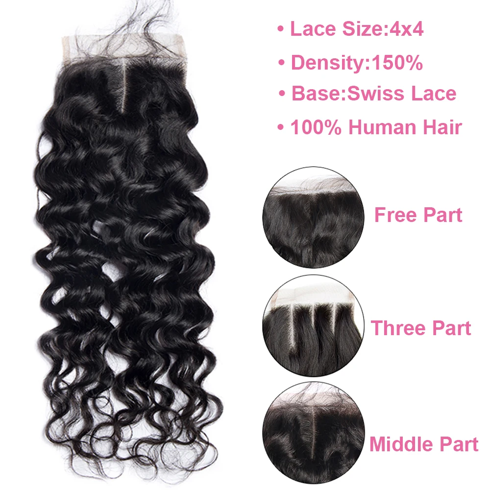Пряди с 4X4 кружевной застежкой влажные и волнистые кудрявые перуанпряди чки человеческих волос тканые с фронтальной застежкой