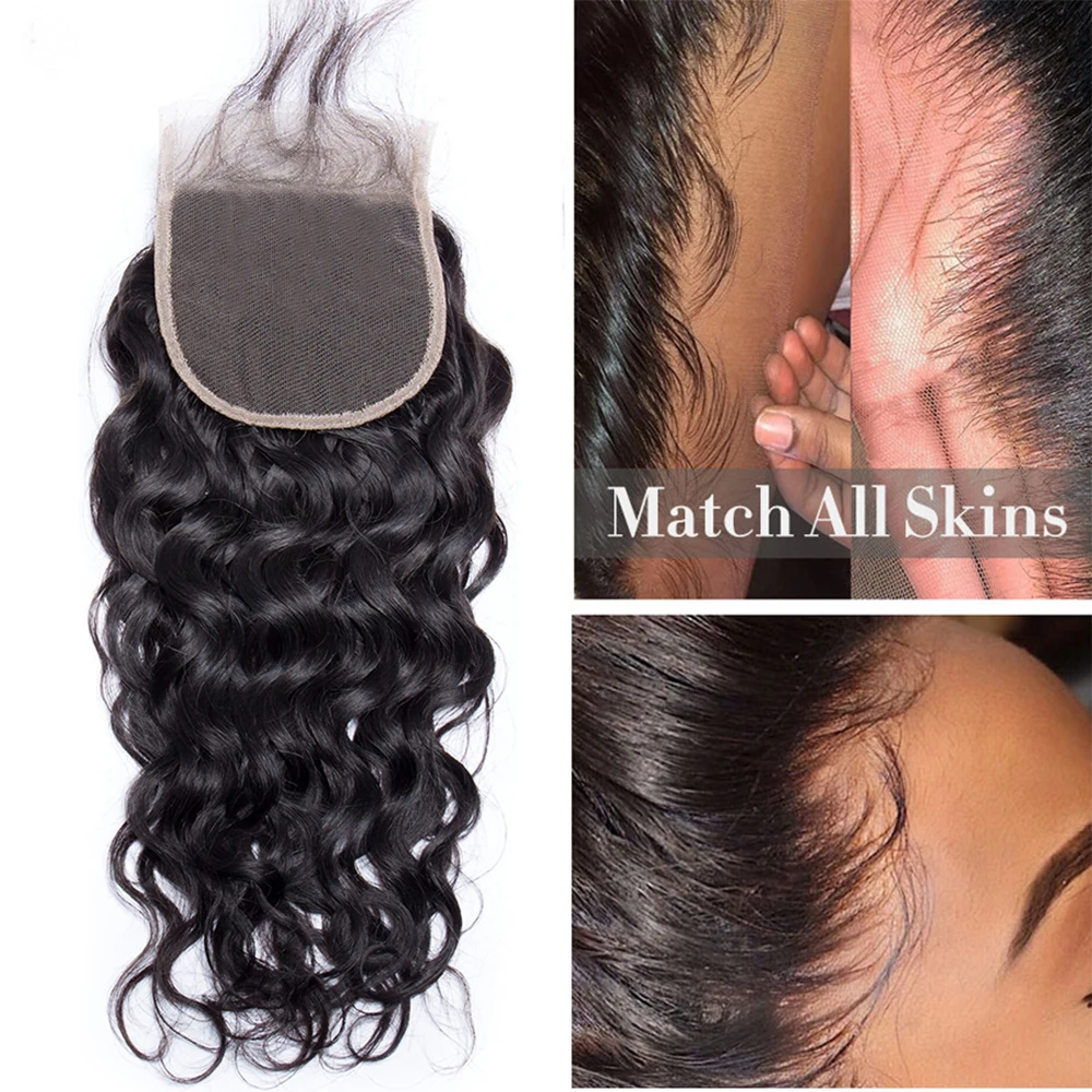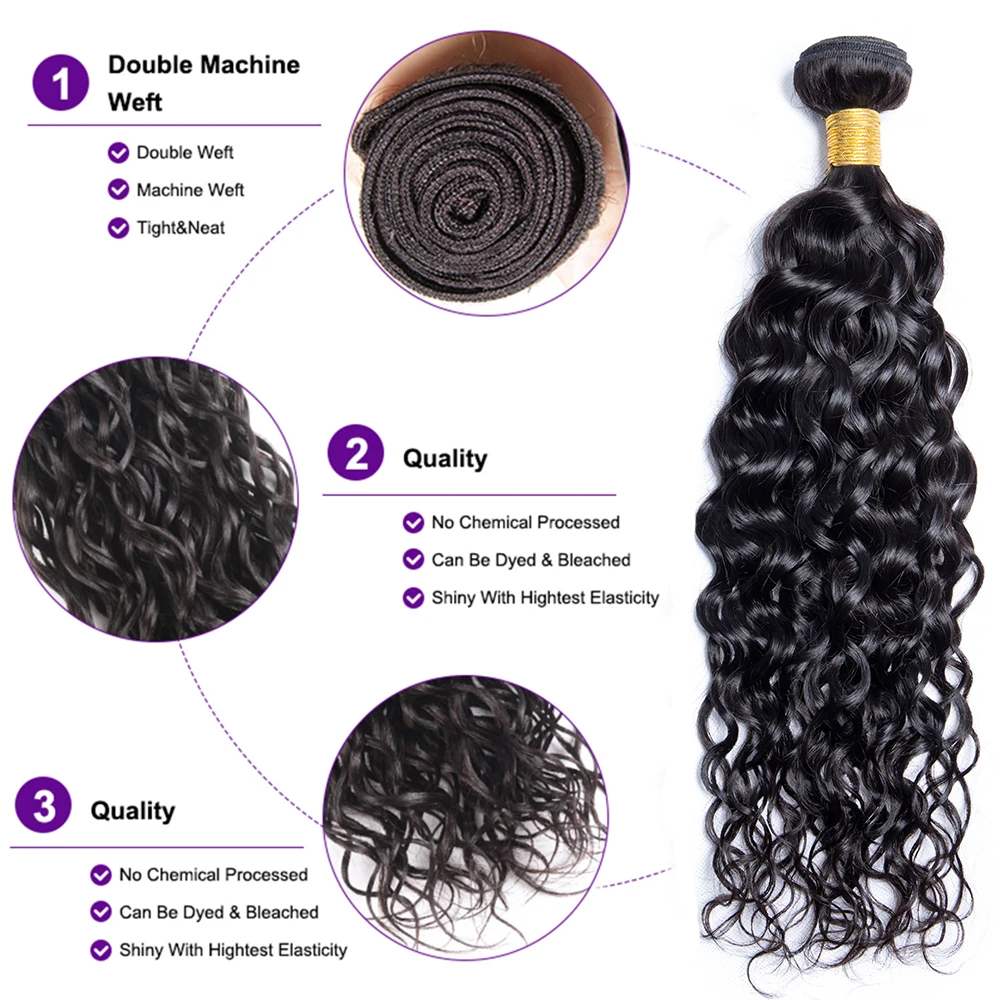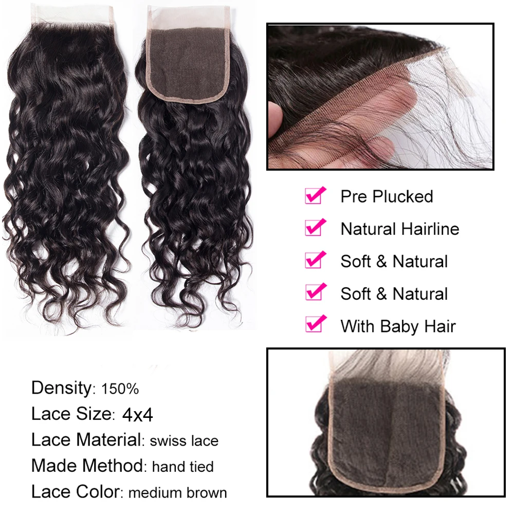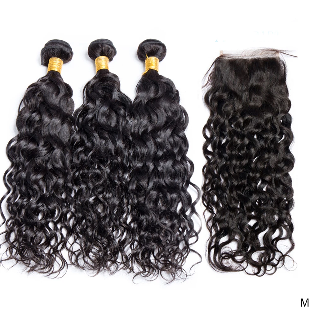 Пряди с 4X4 кружевной застежкой влажные и волнистые кудрявые перуанпряди чки человеческих волос тканые с фронтальной застежкой