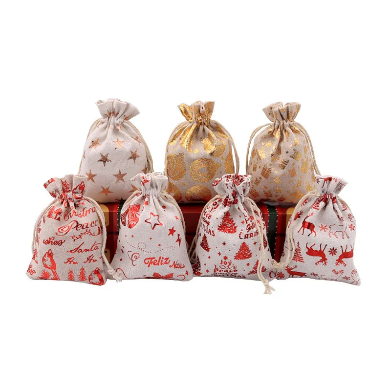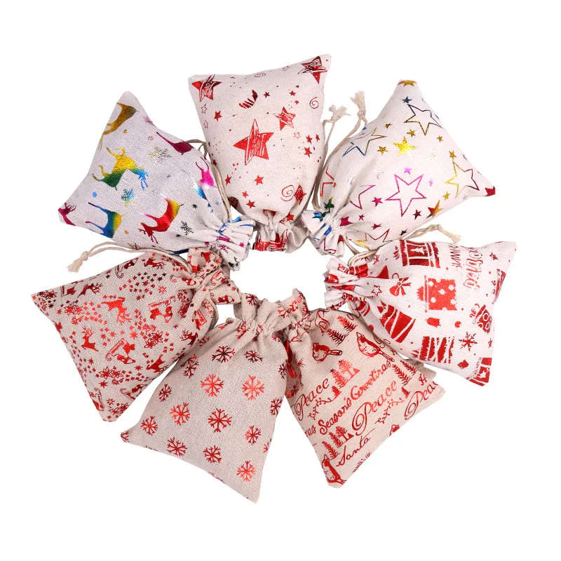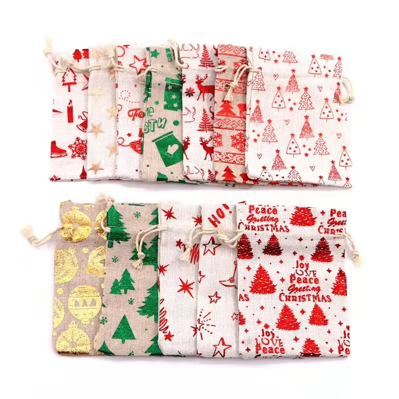 5 шт., рождественский подарок, сумка 10x14 см, льняная хлопковая ткань, упаковка, сумки для свадебной вечеринки, декоративные сумки для ювелирных изделий