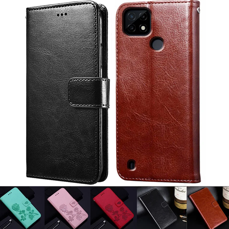 Чехол-бумажник для Realme C11 2021, кожаный чехол-книжка с откидной...