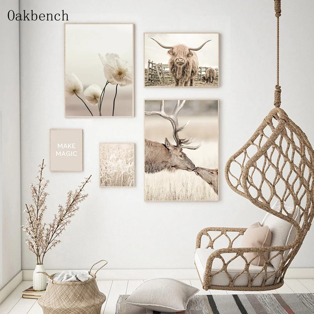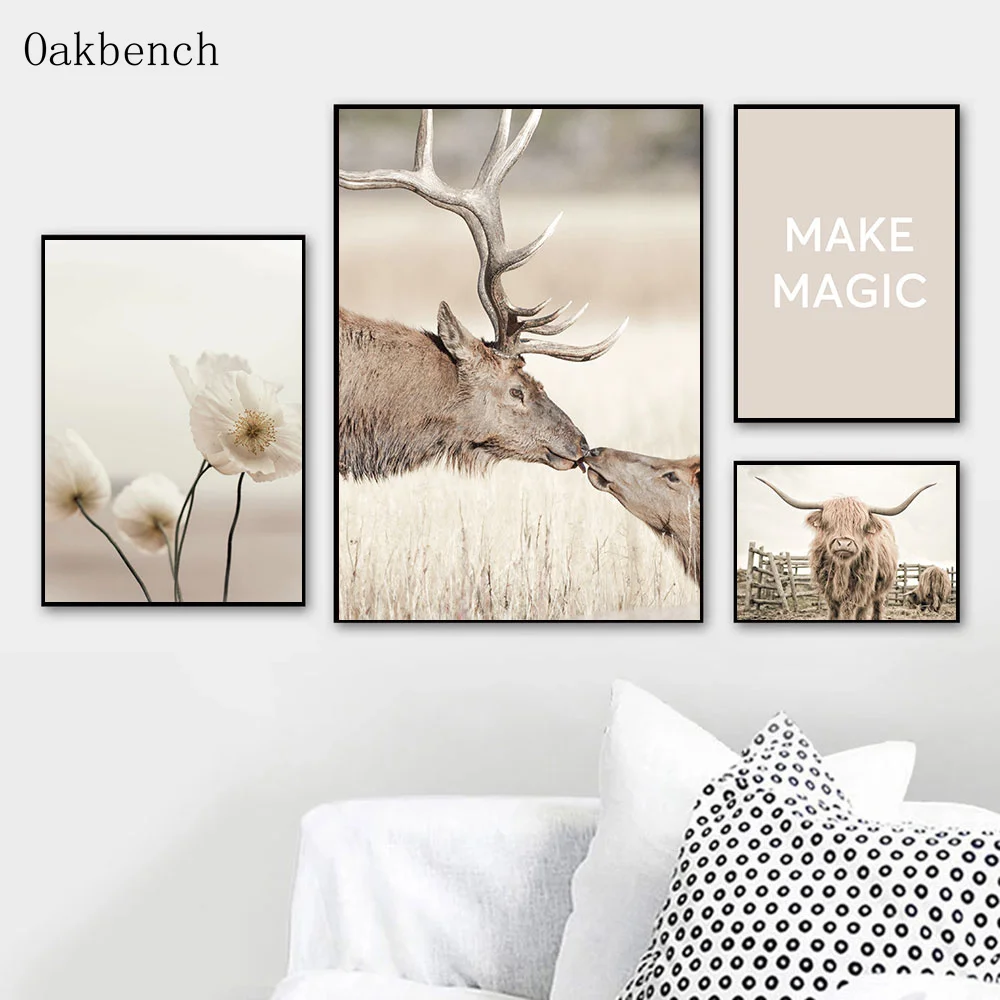 Настенные постеры с рисунком оленя, настенная Картина на холсте с п...