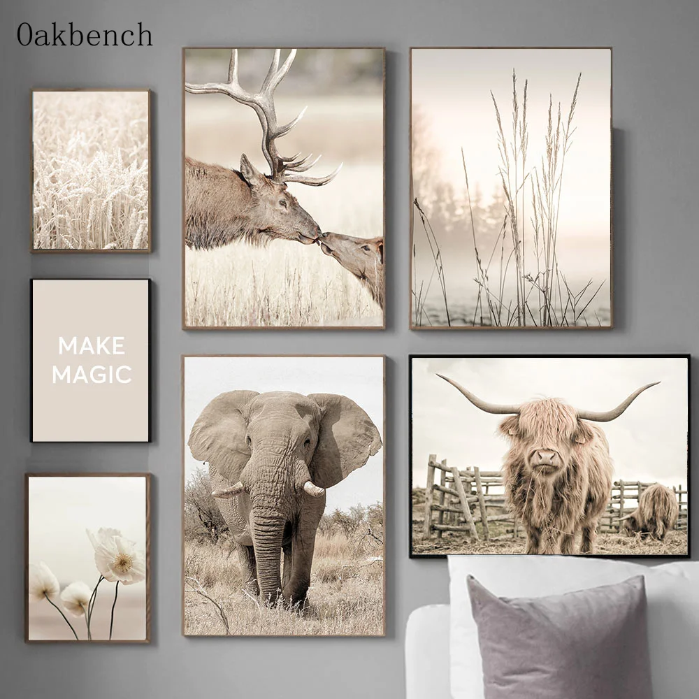Настенный постер с изображением динозавра, слона, оленя, винтажный ...
