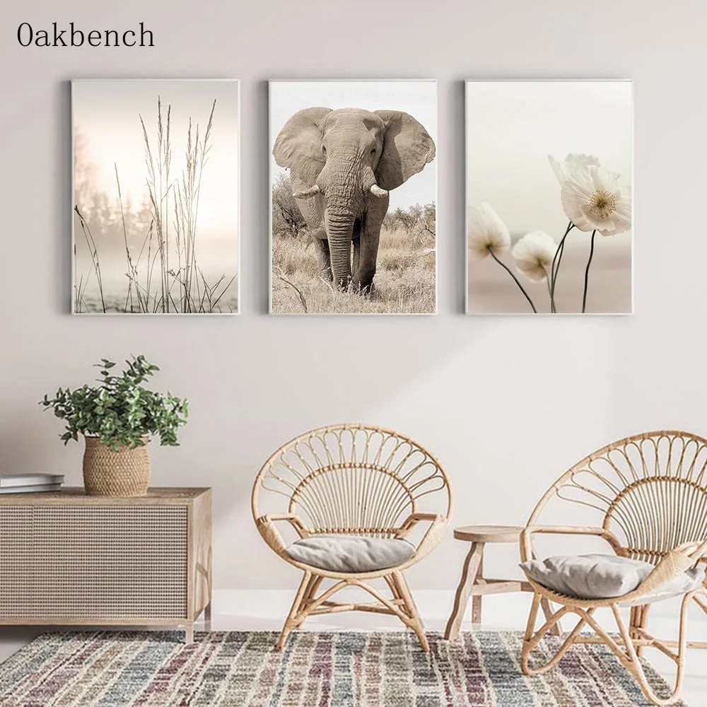 Природный пейзаж, настенная живопись, песок, слон, холст, плакат, с...