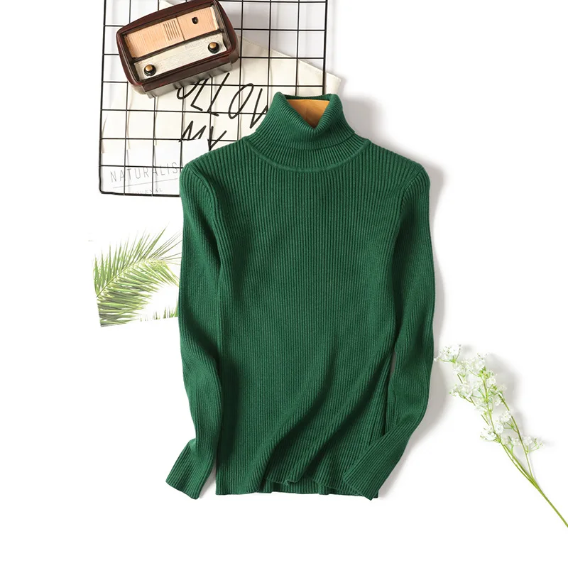 Женский свитер-водолазка Gkfnmt, тонкий вязаный пуловер зеленого цвета, мягкий базовый теплый джемпер для осени и зимы, 2021