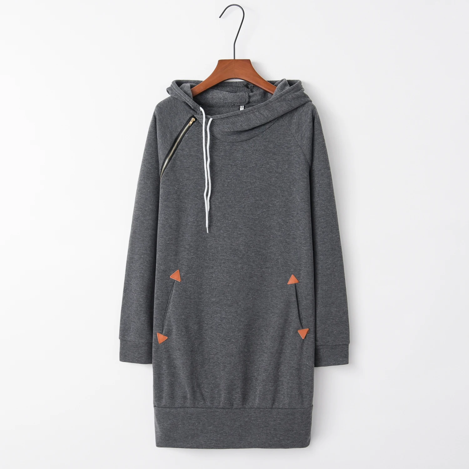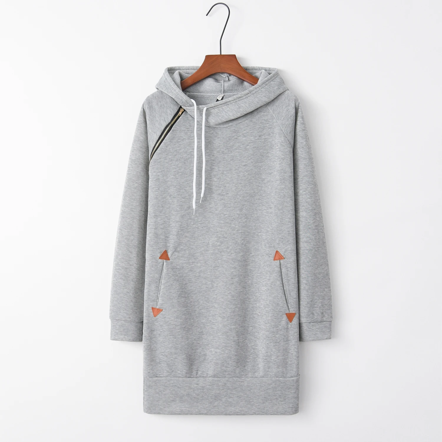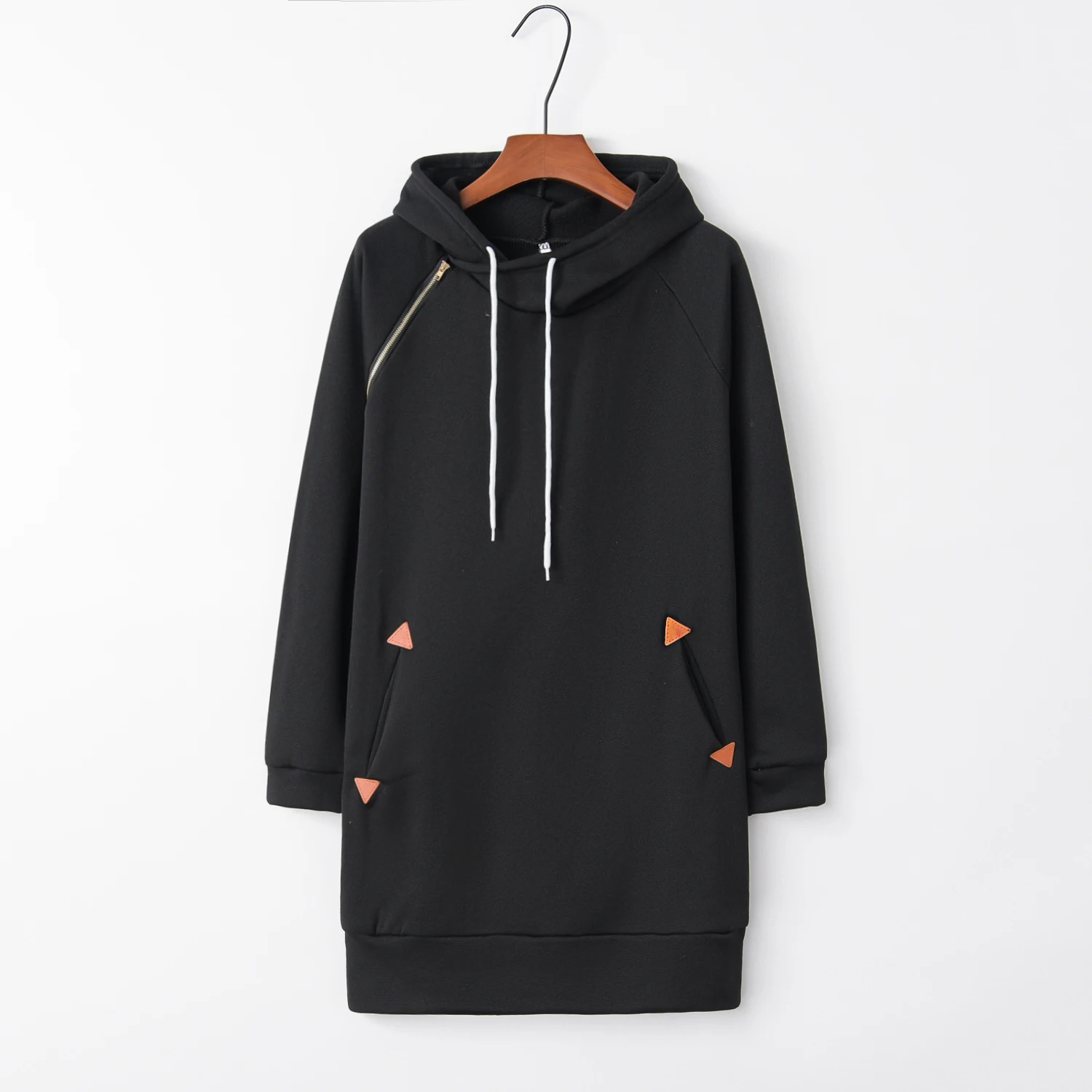 Весенне-осеннее сверхдлинное платье с капюшоном, однотонный свитшот с карманами, Женская туника на шнурке, повседневная одежда на молнии с длинным рукавом и кулиской