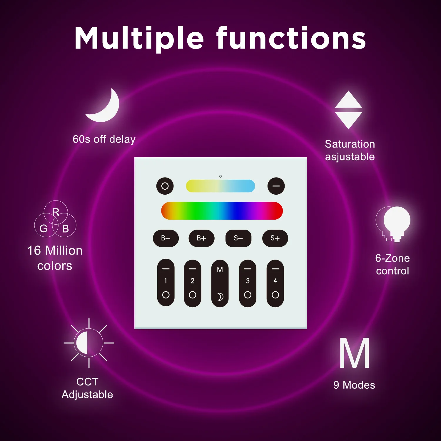 Zigbee 3,0 2,4G RF RGBCCT 6-зонный дистанционный 4-зонный сенсорный настенный выключатель, совместимый с продукцией серии Pro