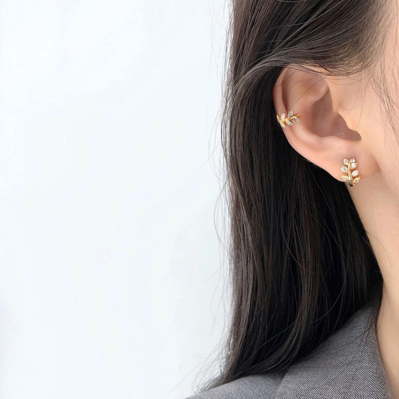 Каффы для ушей женские, с золотыми листьями, 1 шт., циркониевый заж...