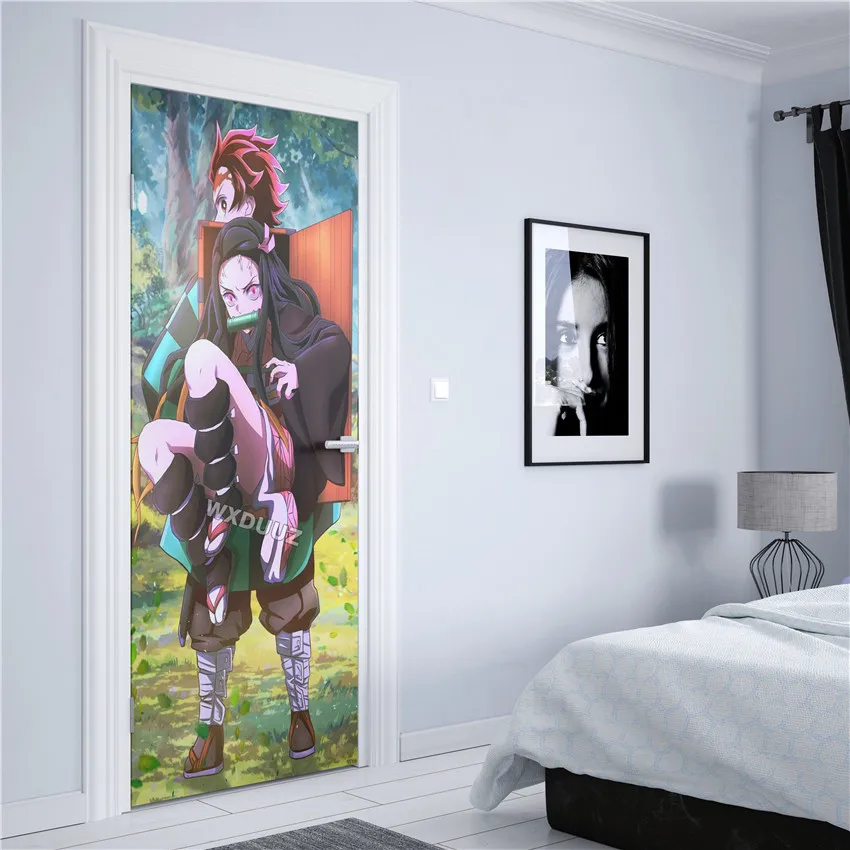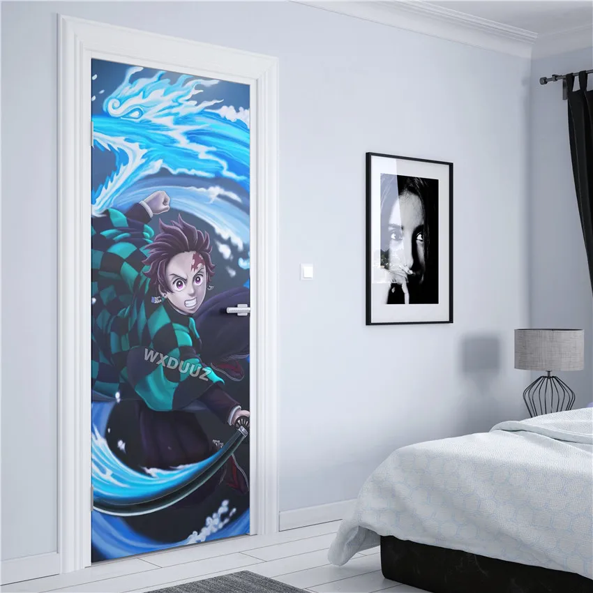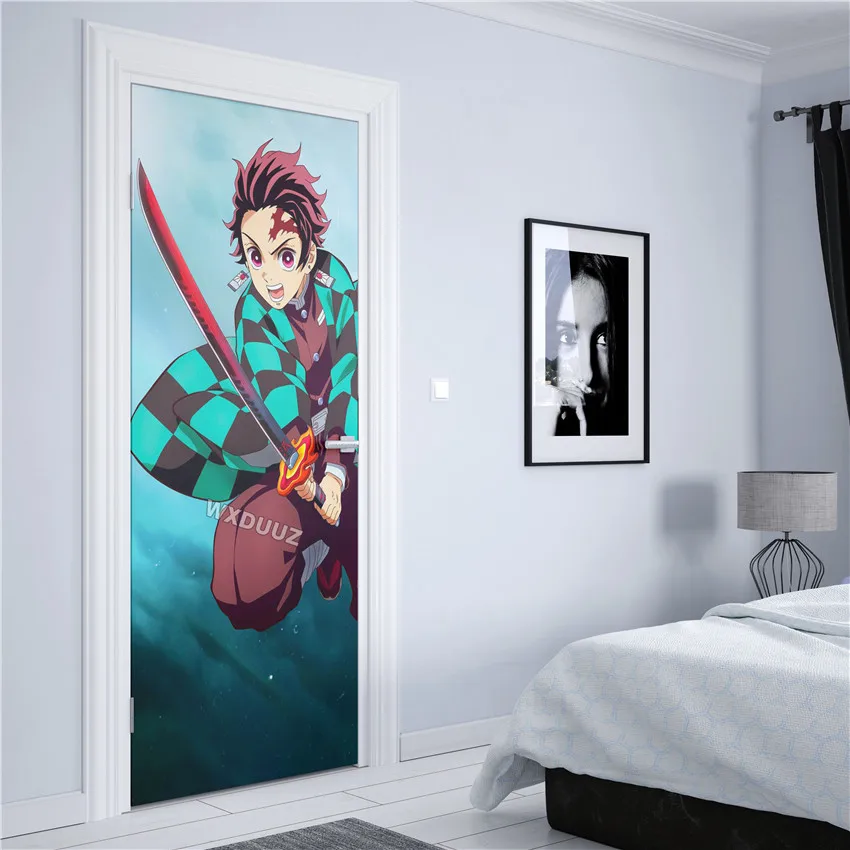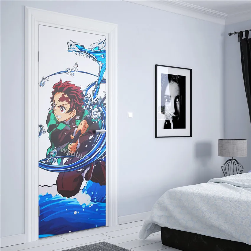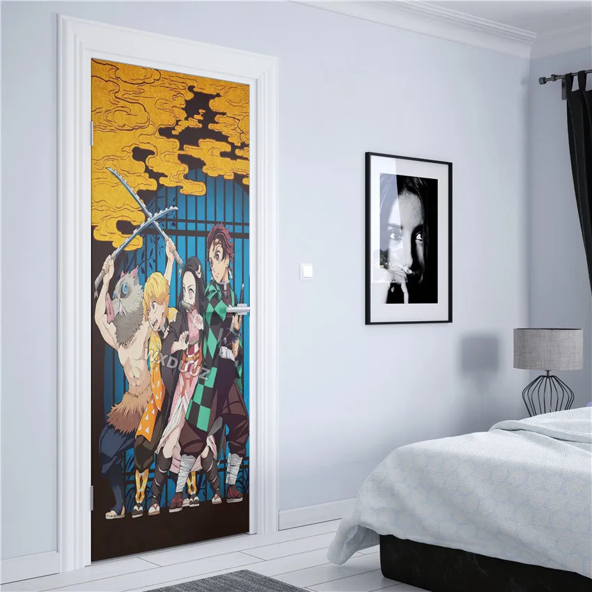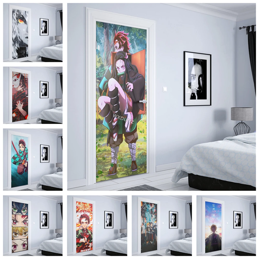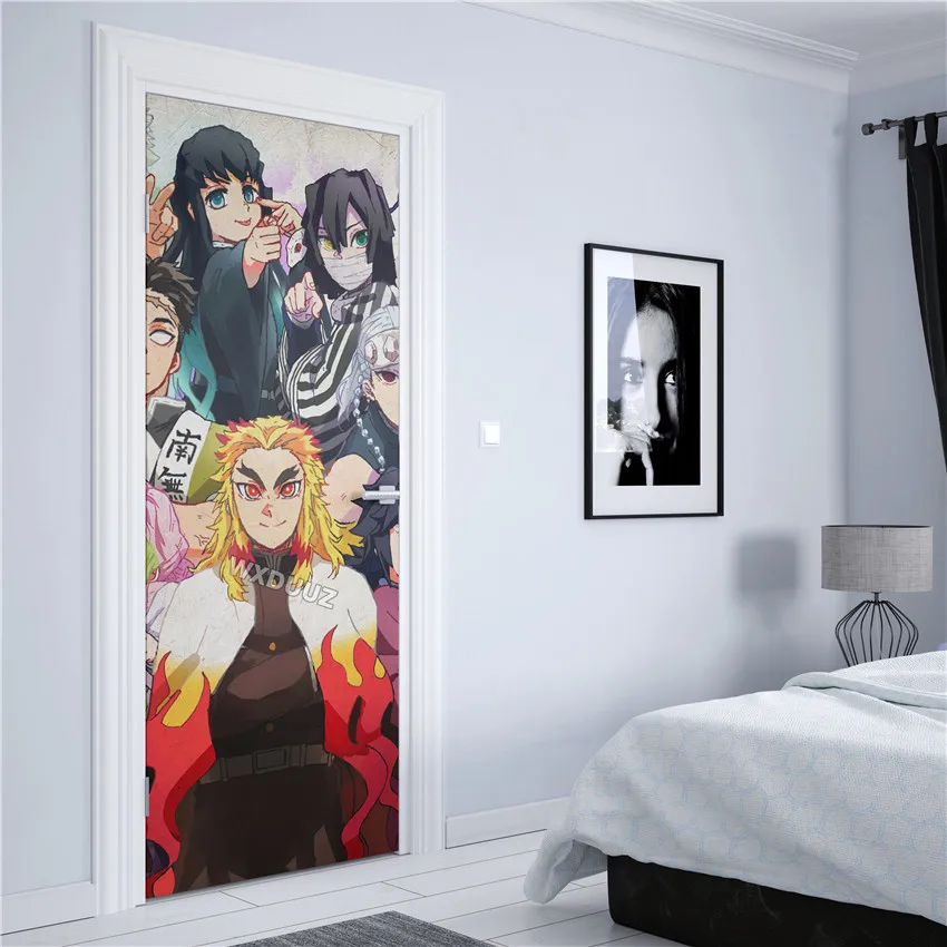 Обои из японского аниме рассекающий демонов, самоклеящиеся виниловые съемные настенные украшения для дверей, домашний декор, художественные Декоративные наклейки для дверей