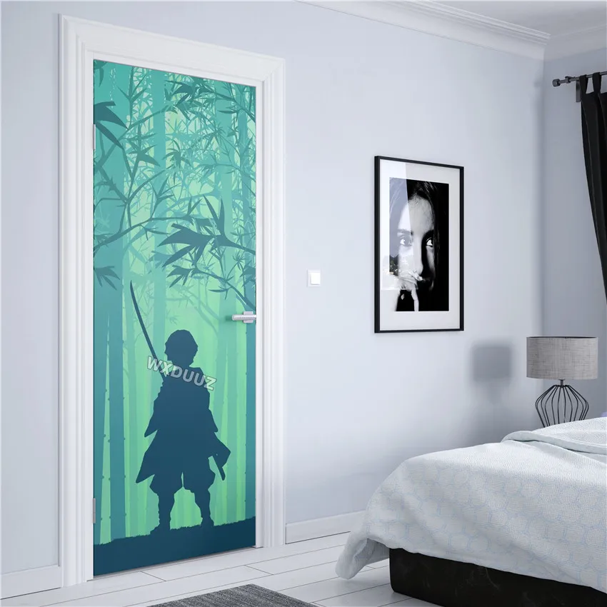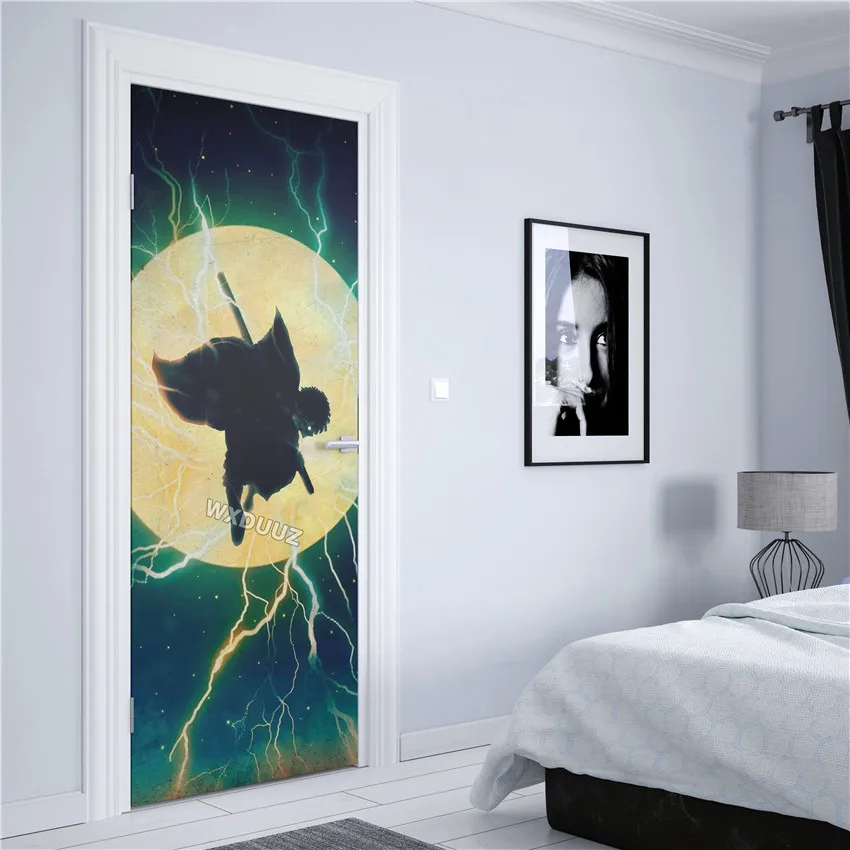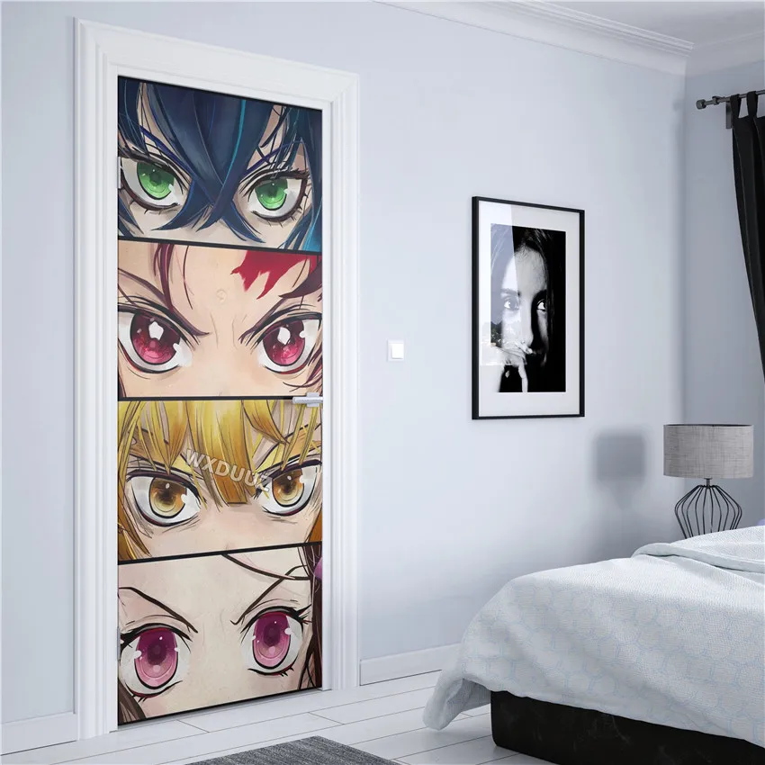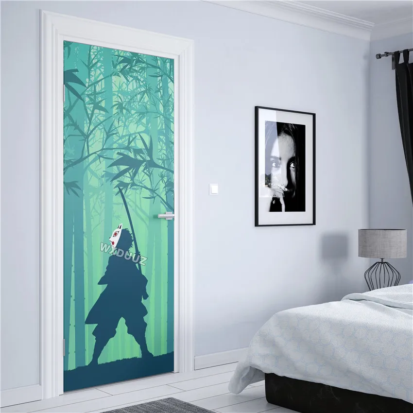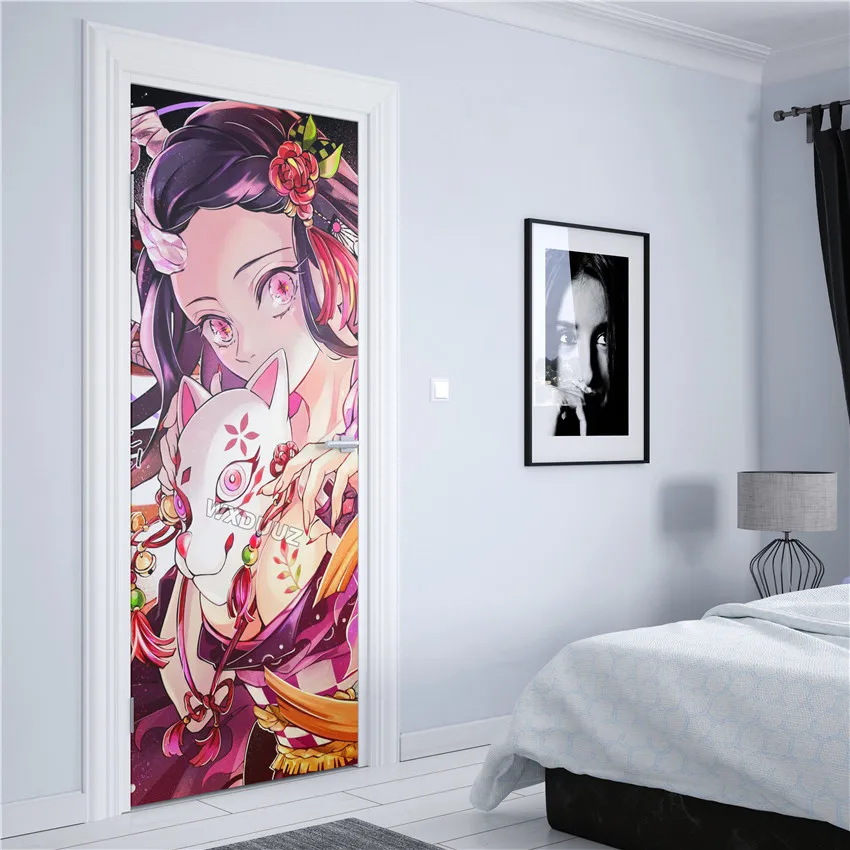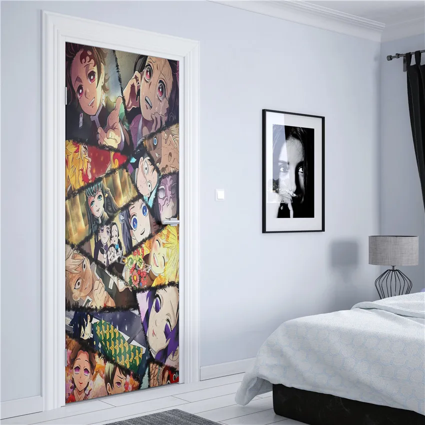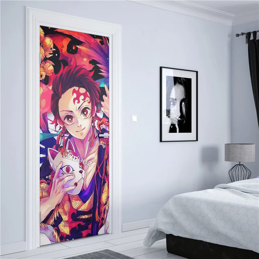 Обои из японского аниме рассекающий демонов, самоклеящиеся виниловые съемные настенные украшения для дверей, домашний декор, художественные Декоративные наклейки для дверей