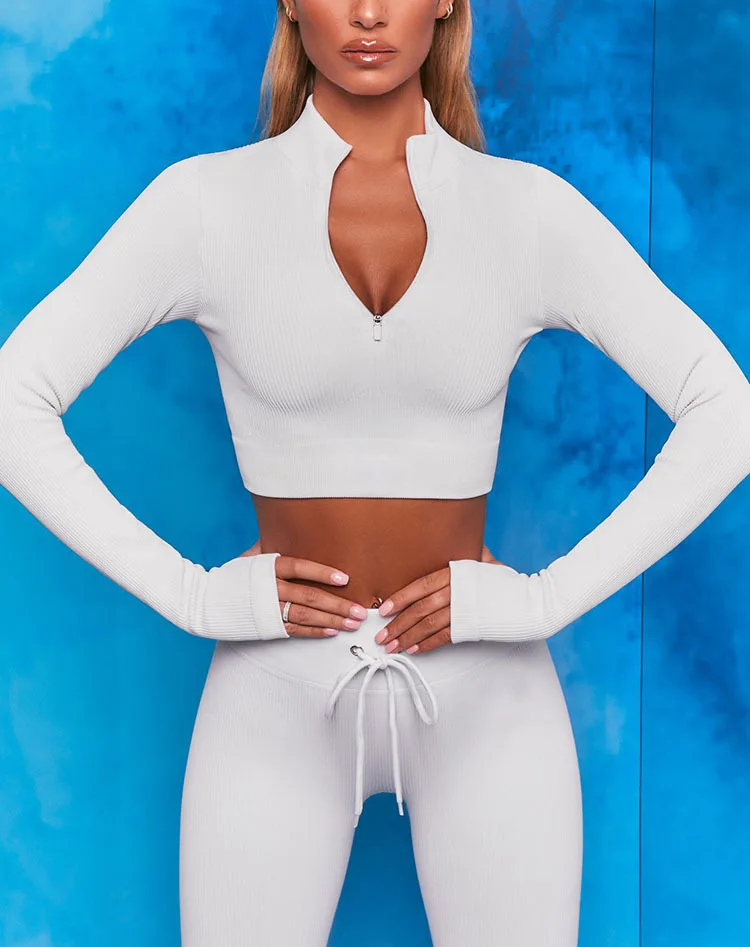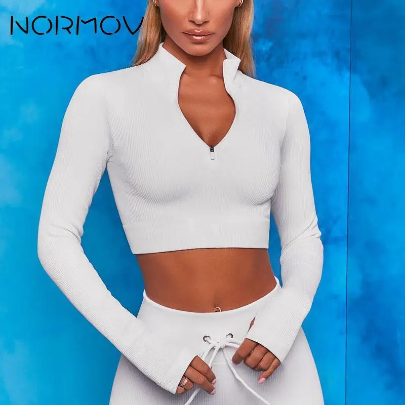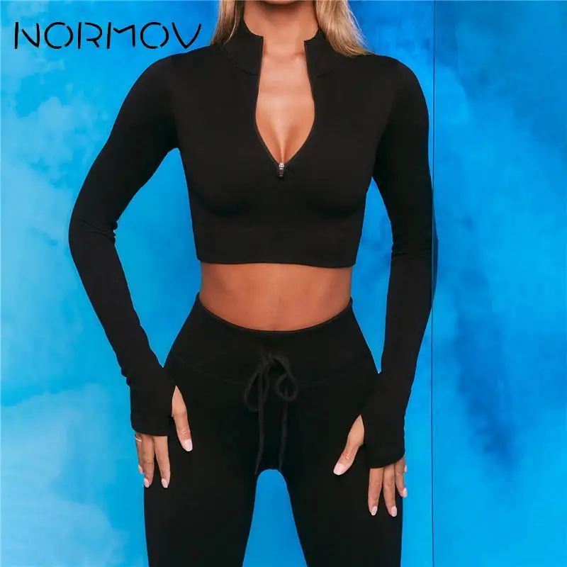 Комплект для йоги NORMOV с длинным рукавом, спортивные комплекты из 2 предметов на молнии, бесшовная одежда для тренировок, одежда для фитнеса, костюмы для спортзала, леггинсы на шнурке