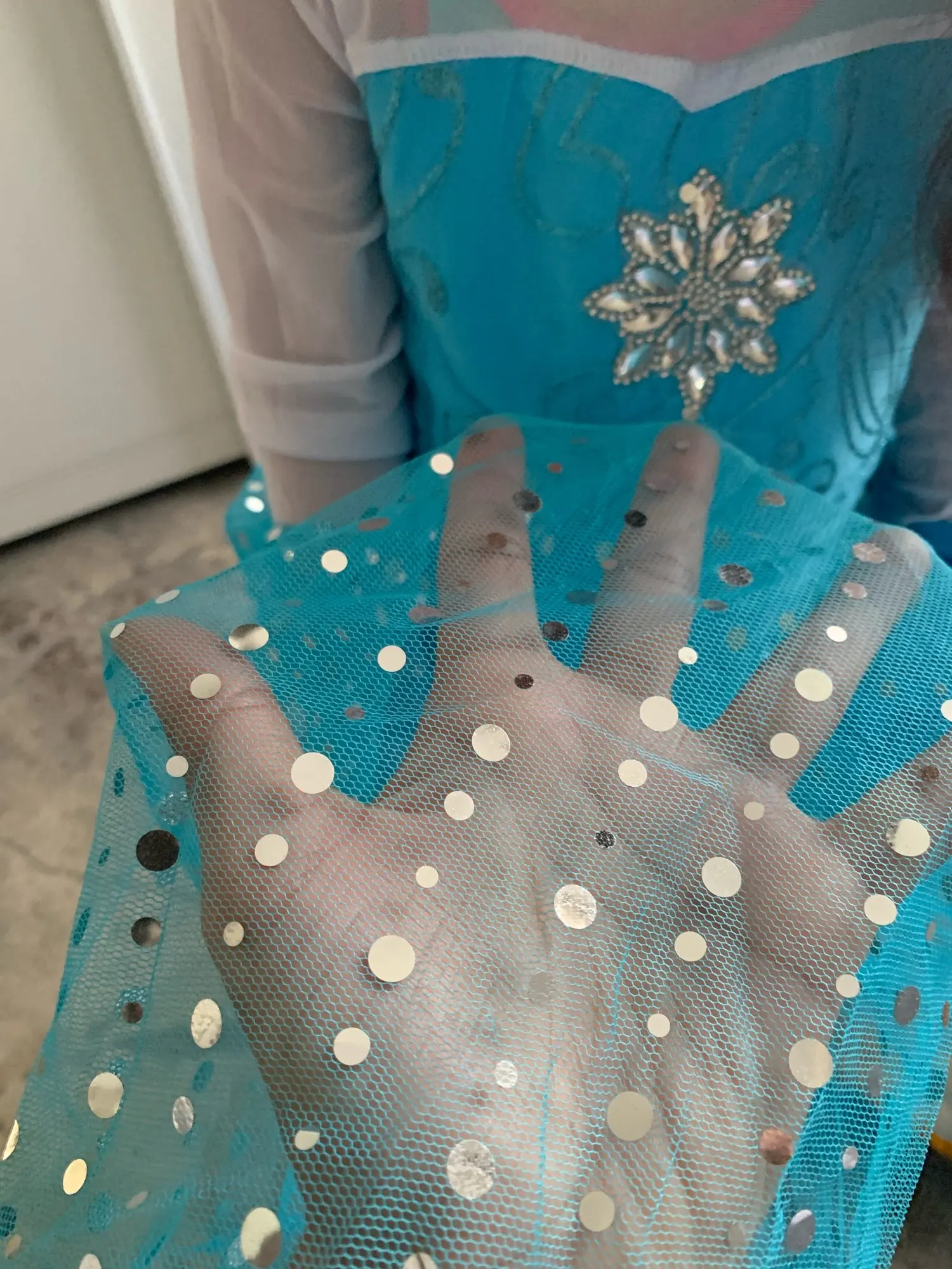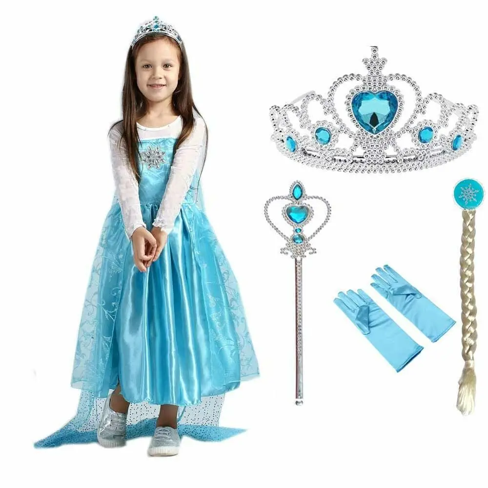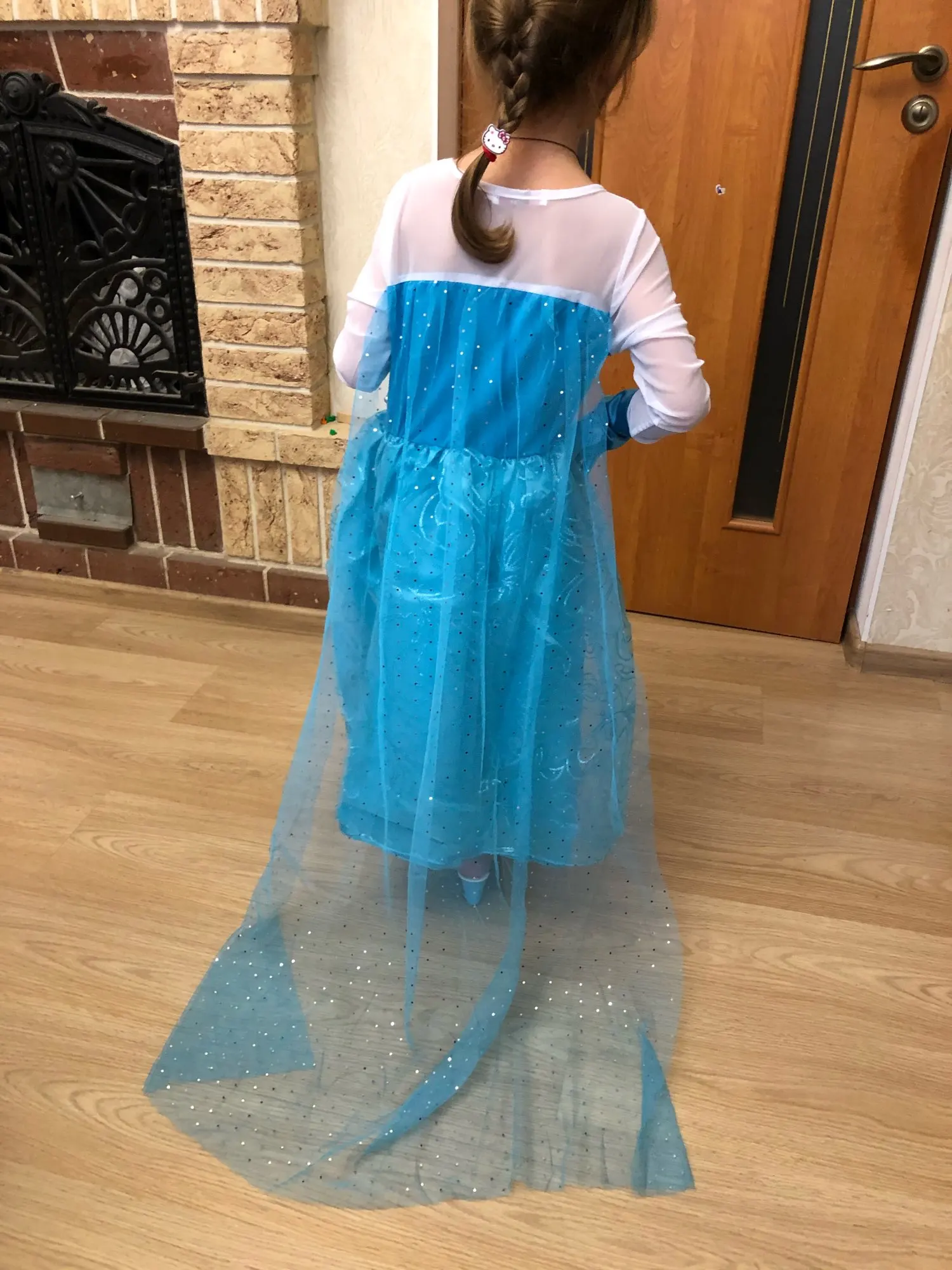 Это красивый костюм «Холодное сердце Диснея», сделанный очень хорошо и идеально подходит для вашей Эльзы. Очень сверкающий, и поезд очень красивый. Аксессуары хорошие, но я купил хрустальную корону и диаду для дополнительного выбора. Конский хвост слишком милый, перчатки снимаются. Отличная покупка