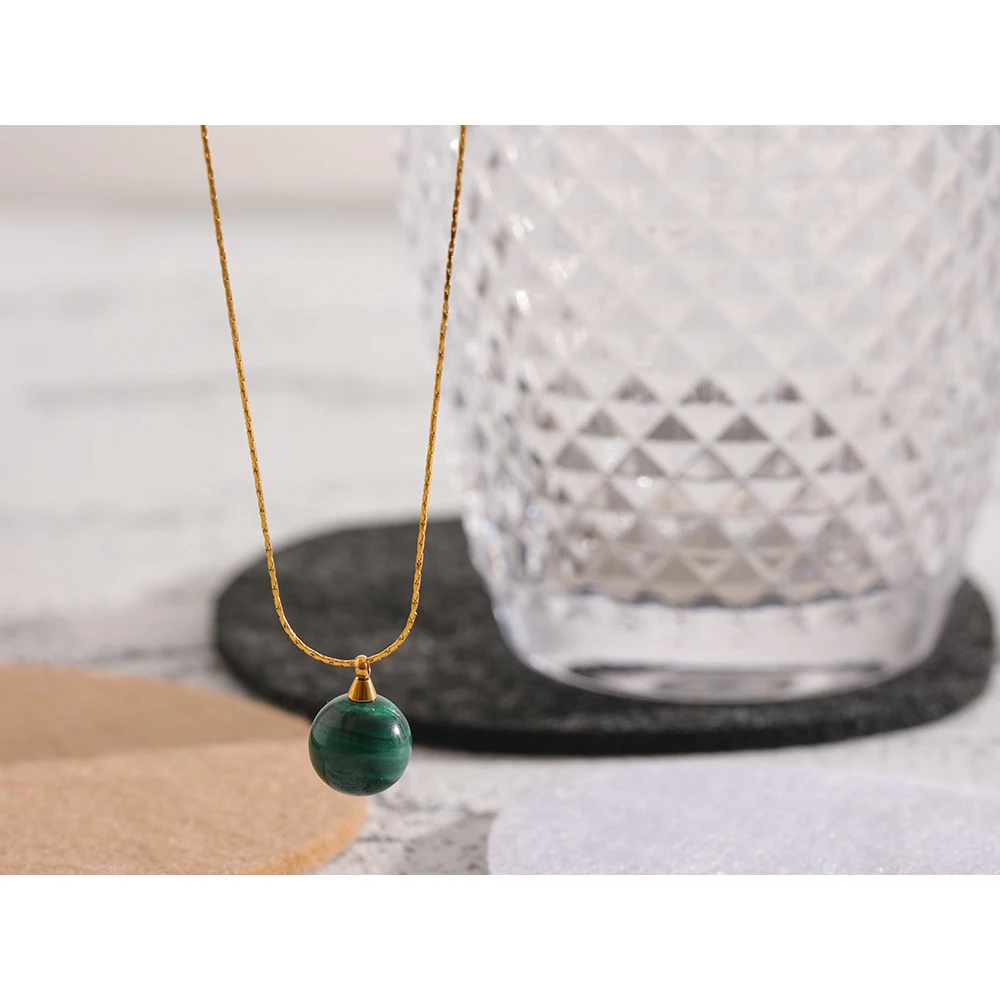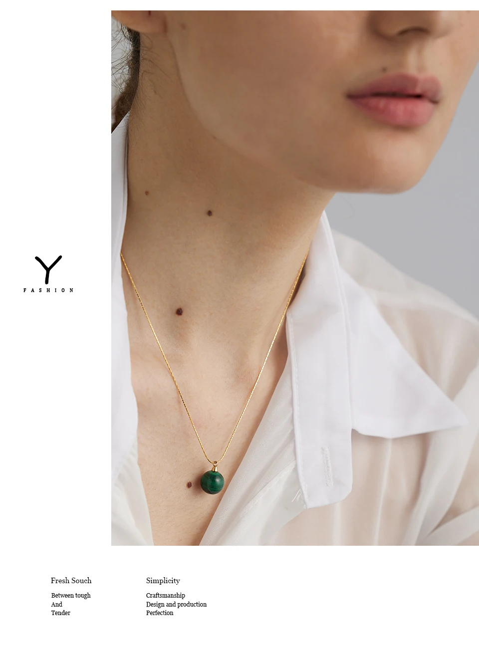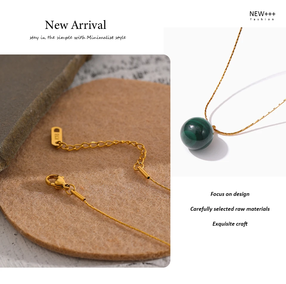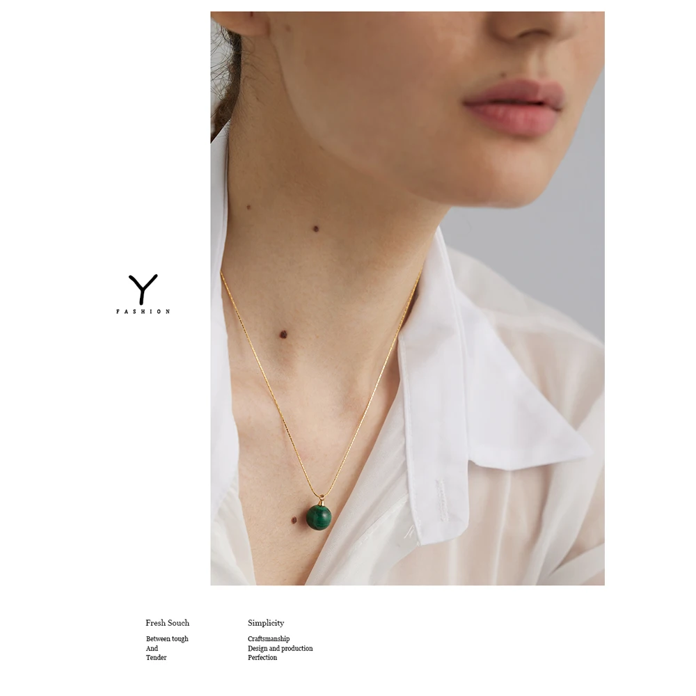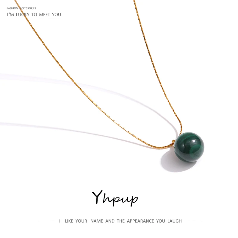 Ожерелье Yhpup с круглым кулоном из зеленого малахата, Новая металлическая цепочка из нержавеющей стали, золотое ожерелье 18 К, Вечерний Подарок 2021