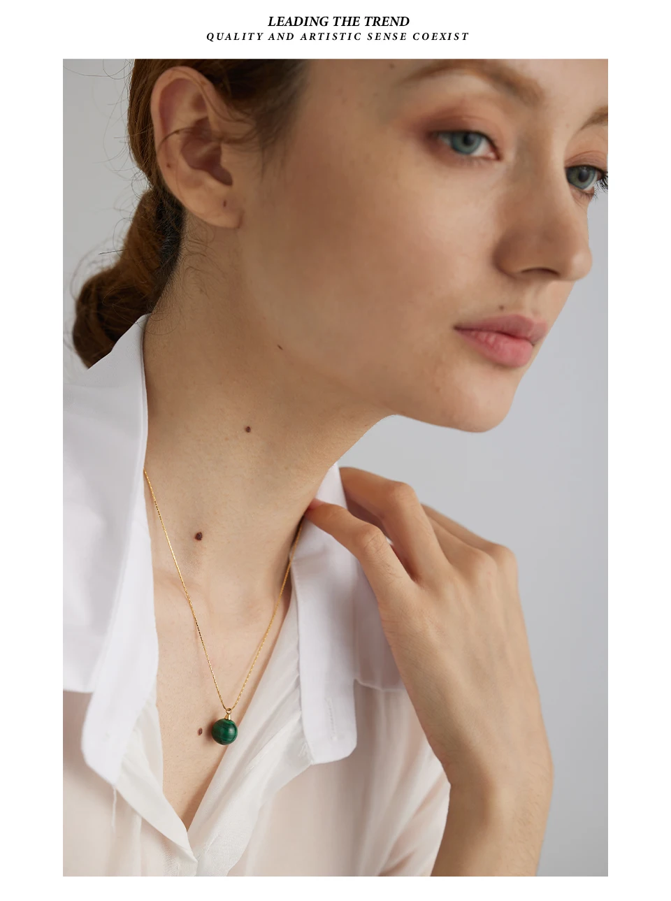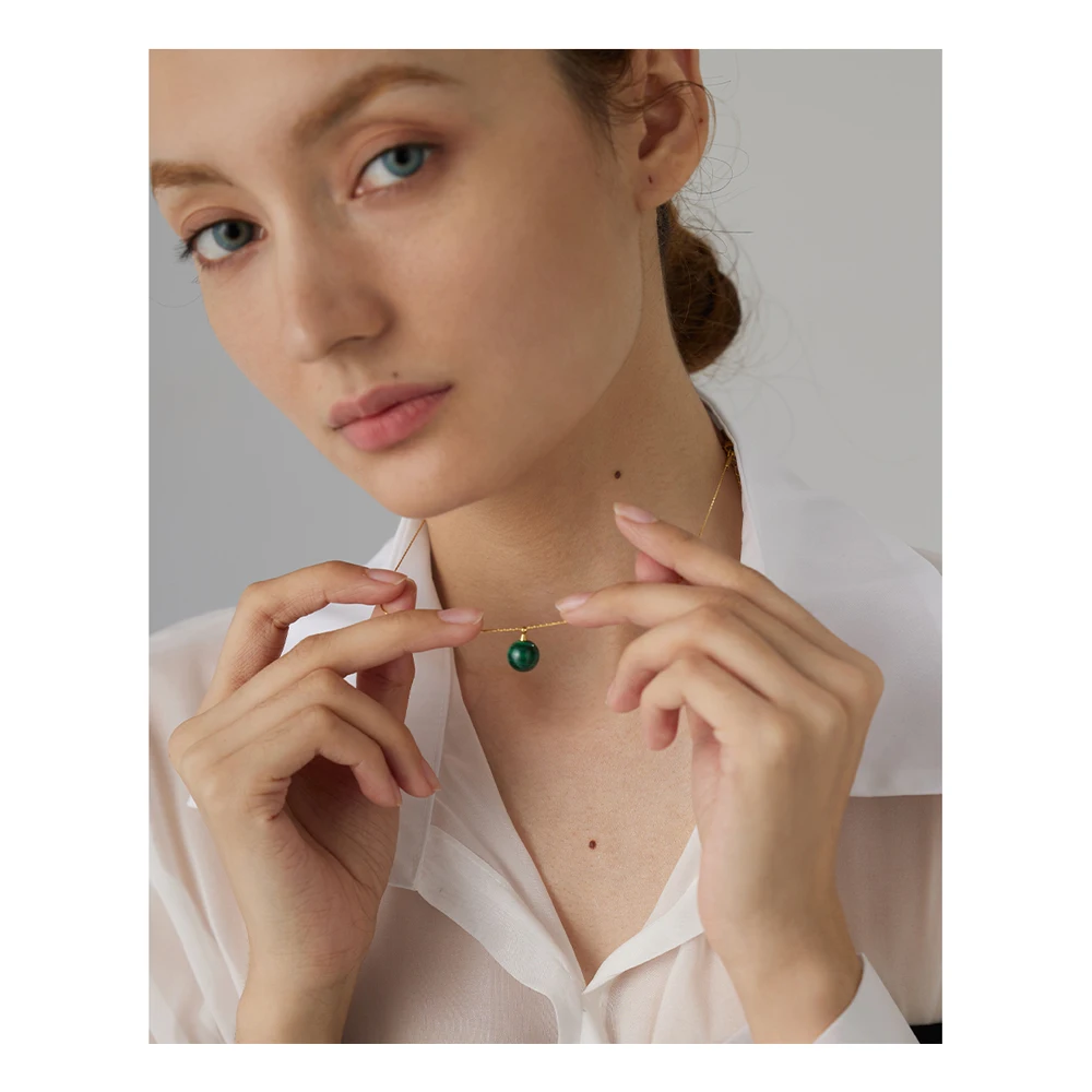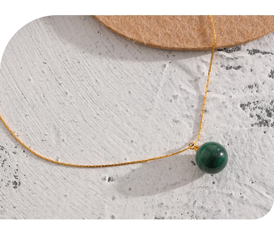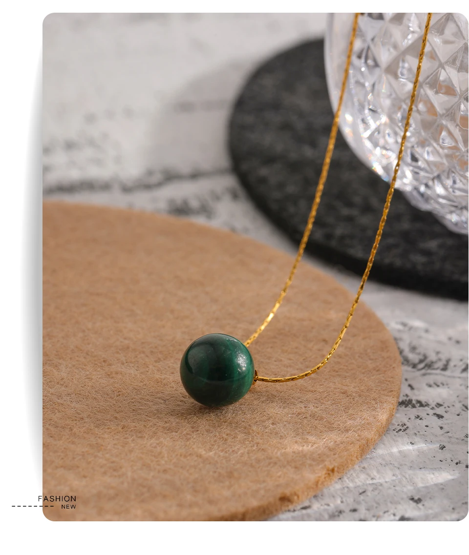 Ожерелье Yhpup с круглым кулоном из зеленого малахата, Новая металлическая цепочка из нержавеющей стали, золотое ожерелье 18 К, Вечерний Подарок 2021
