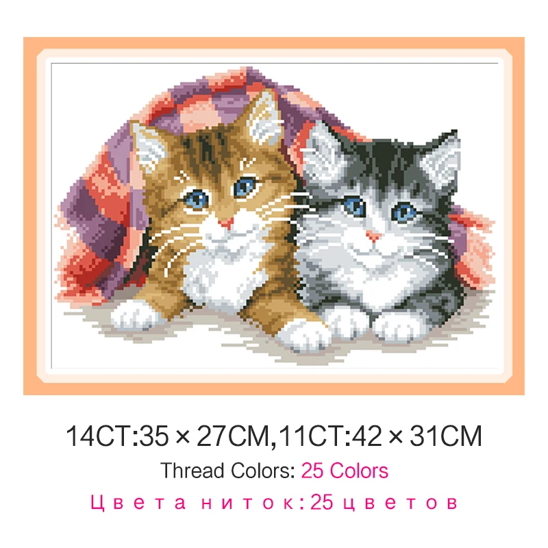 Два милых кота вышивка крестиком полный комплект Печатный холст 11CT 14CT Diy ручной работы Рукоделие украшение дома
