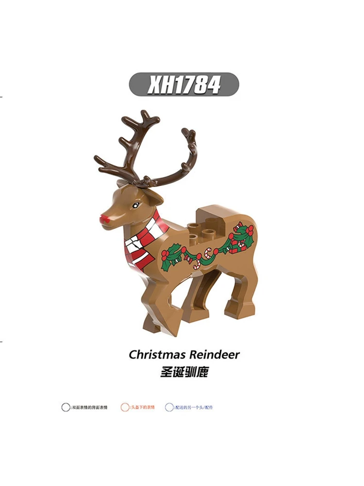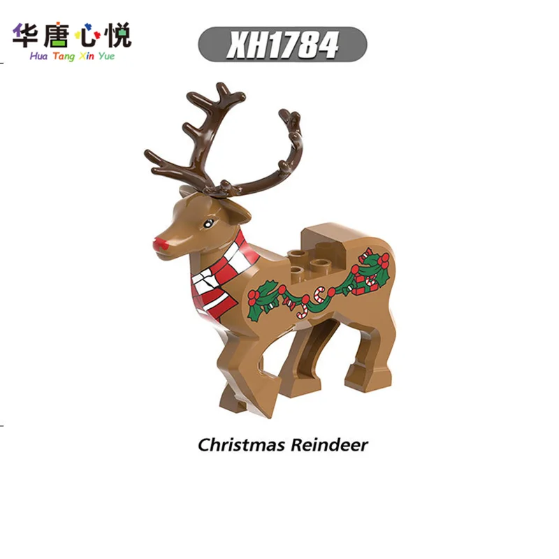 MOC XH1784 рождественские животные коричневый Лось с красным клетчатым шарфом Новогодний подарок Сборка строительный блок Развивающие игрушки для детей