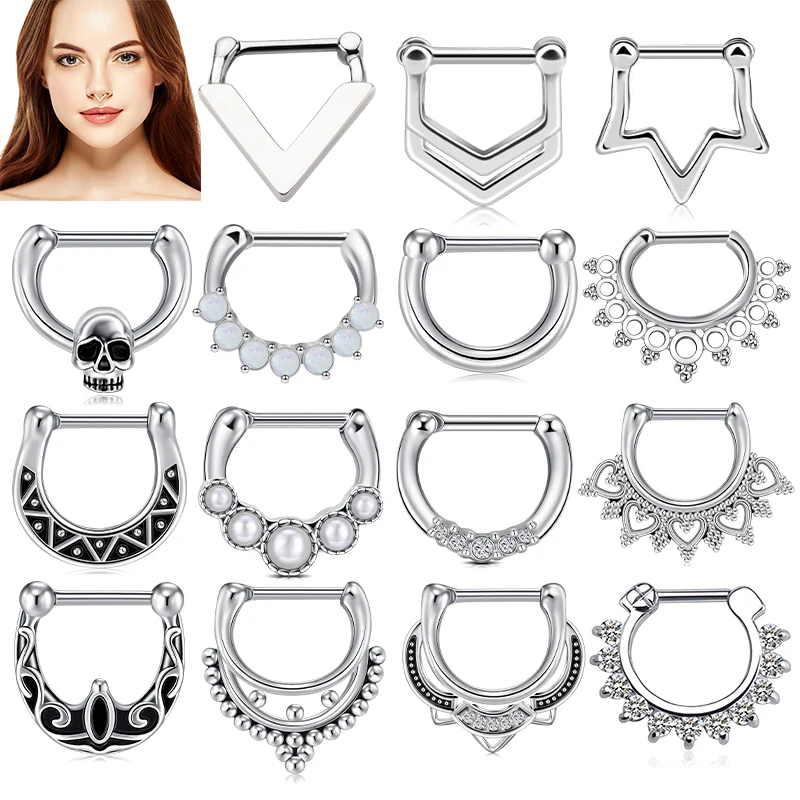 1 шт. 16G из нержавеющей стали, перегородка, пирсинг в носу, пирсинг в носу, мерцание пирсинг, подвесные украшения для носа, серьги, кольцо для носа