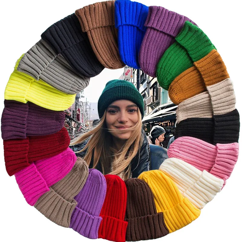 Шапка унисекс из смеси хлопка, однотонные теплые мягкие вязаные шапки, мужские зимние шапки, женские шапочки, облегающие шапки, 1 шт.