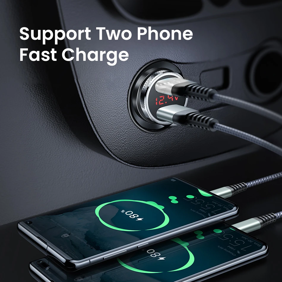 Металлическое автомобильное зарядное устройство со светодиодным дисплеем и двумя USB-портами, 4,8 А