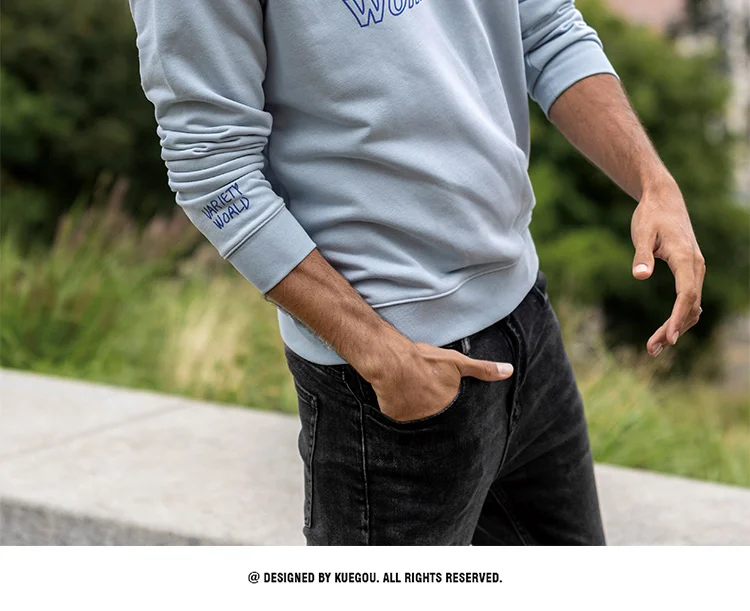 KUEGOU осенние толстовки, модная одежда, мужские свитшоты, джоггеры...