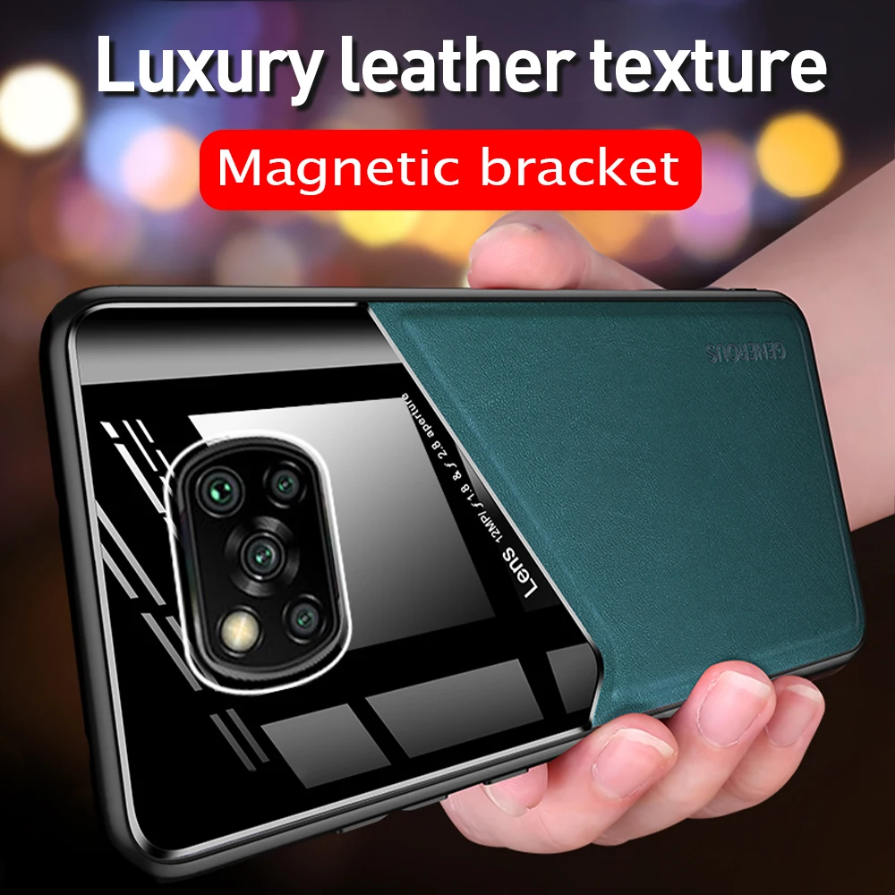 Автомобильный магнитный держатель кожаный чехол для Xiaomi Poco X3 NFC Pocophone F3 M3 Pro 5G X2 Poxo M F X 3 GT акриловый защитный чехол