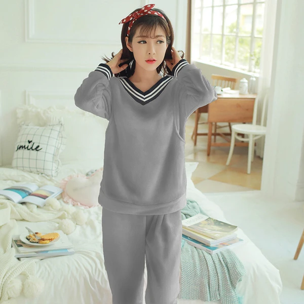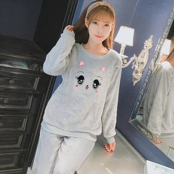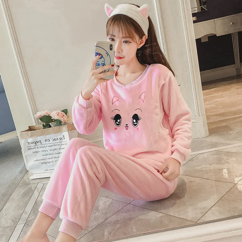 Пижама для молодых женщин, теплая фланелевая Женская осенне-зимняя ...