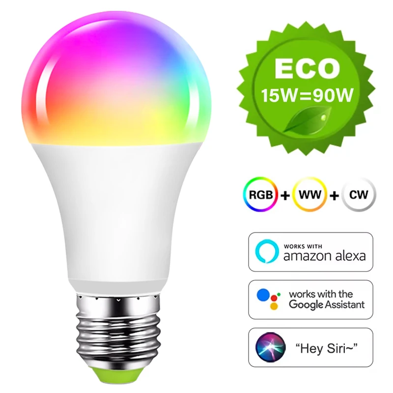 Умная лампа с Wi-Fi, 15 Вт, E27 E26 B22 RGB + CCT, с регулировкой яркости, с приложением Cozylife, голосовым управлением для Google Home, Alexa