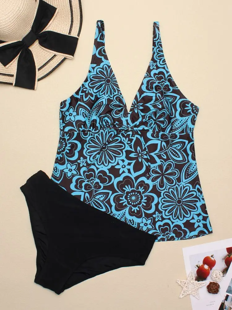 Купальный костюм для женщин, купальник с низкой талией, пляжные купальные костюмы, купальник из двух частей с цветочным принтом, танкини с треугольным вырезом, боди