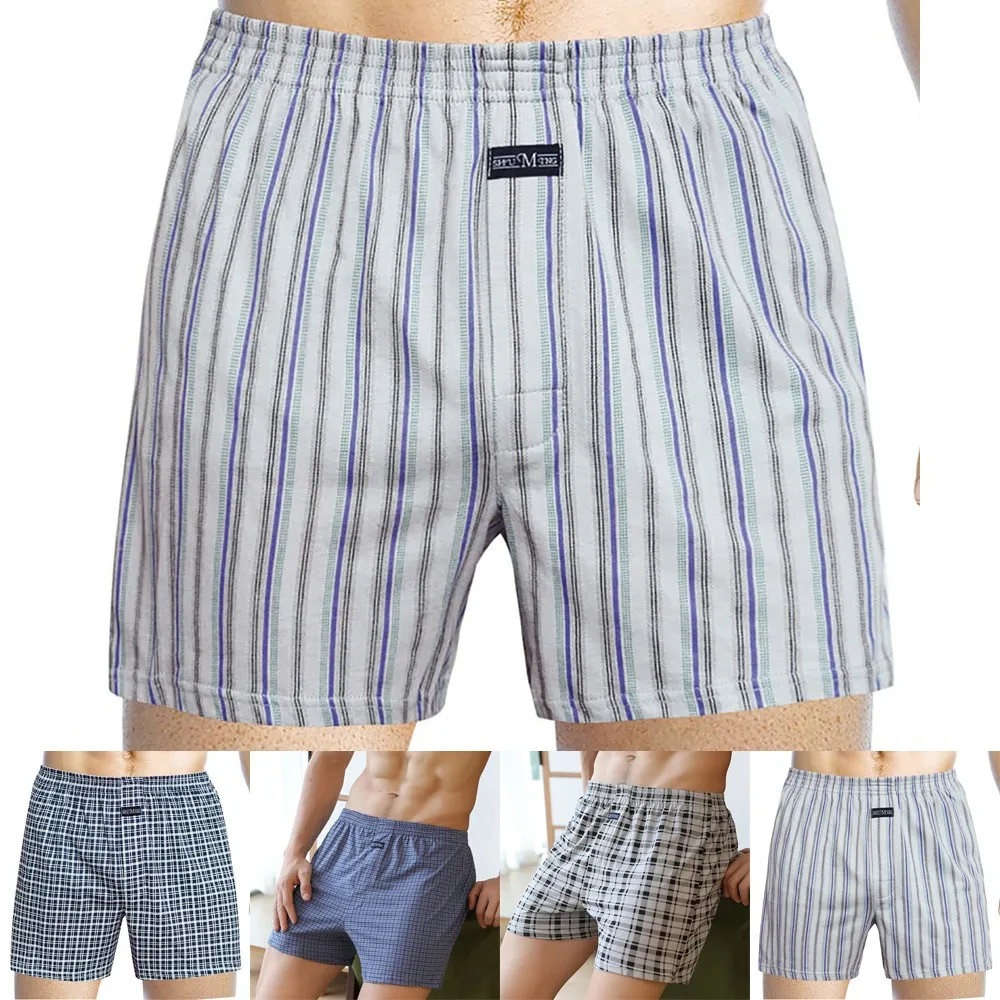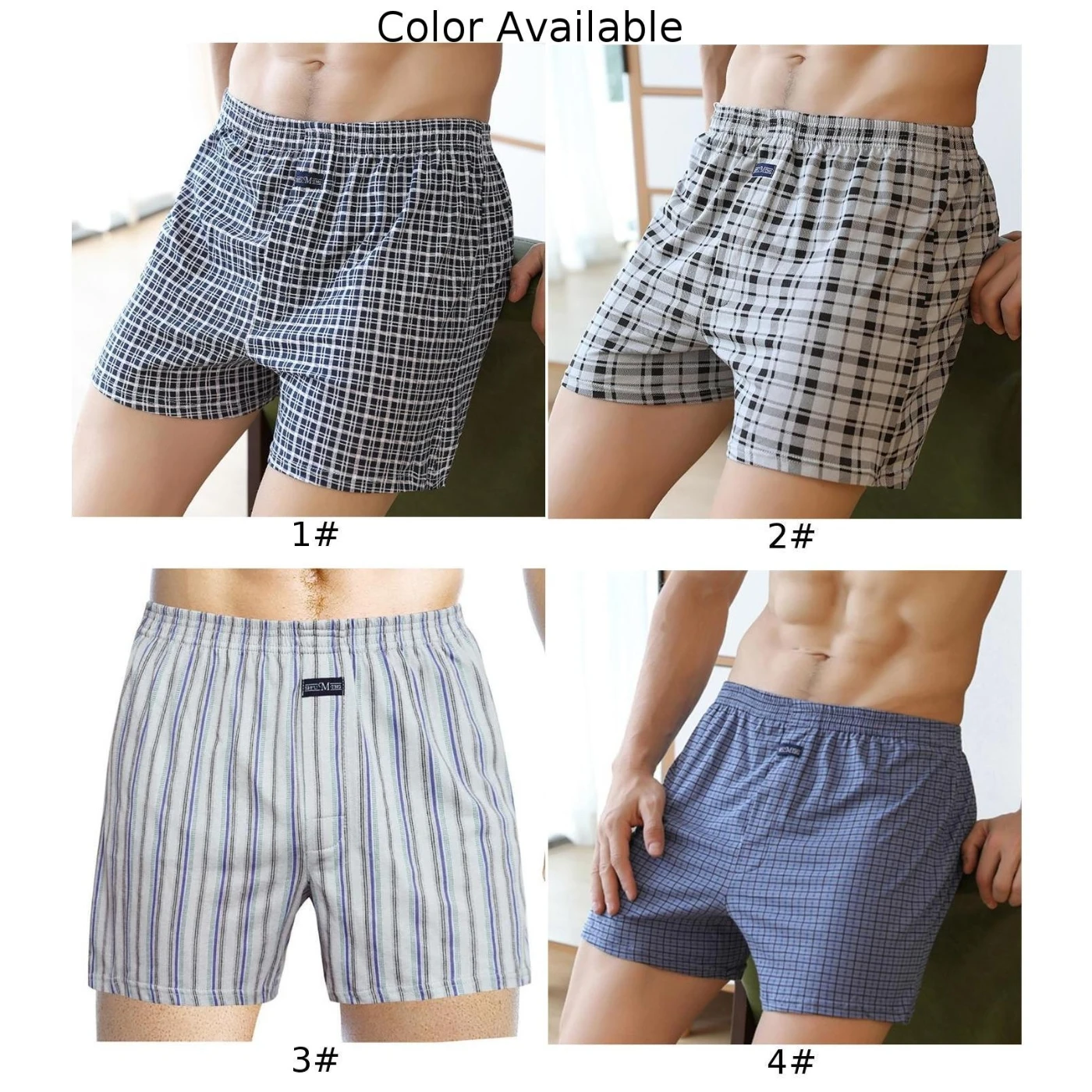 Шорты-боксеры мужские свободного покроя, повседневные хлопковые боксеры в клетку, с широкими штанинами, домашнее интимное нижнее белье