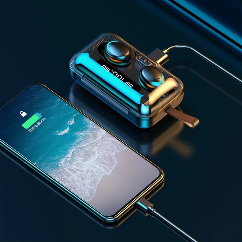 TWS-стереонаушники с микрофоном и зарядным футляром, 2200 мАч