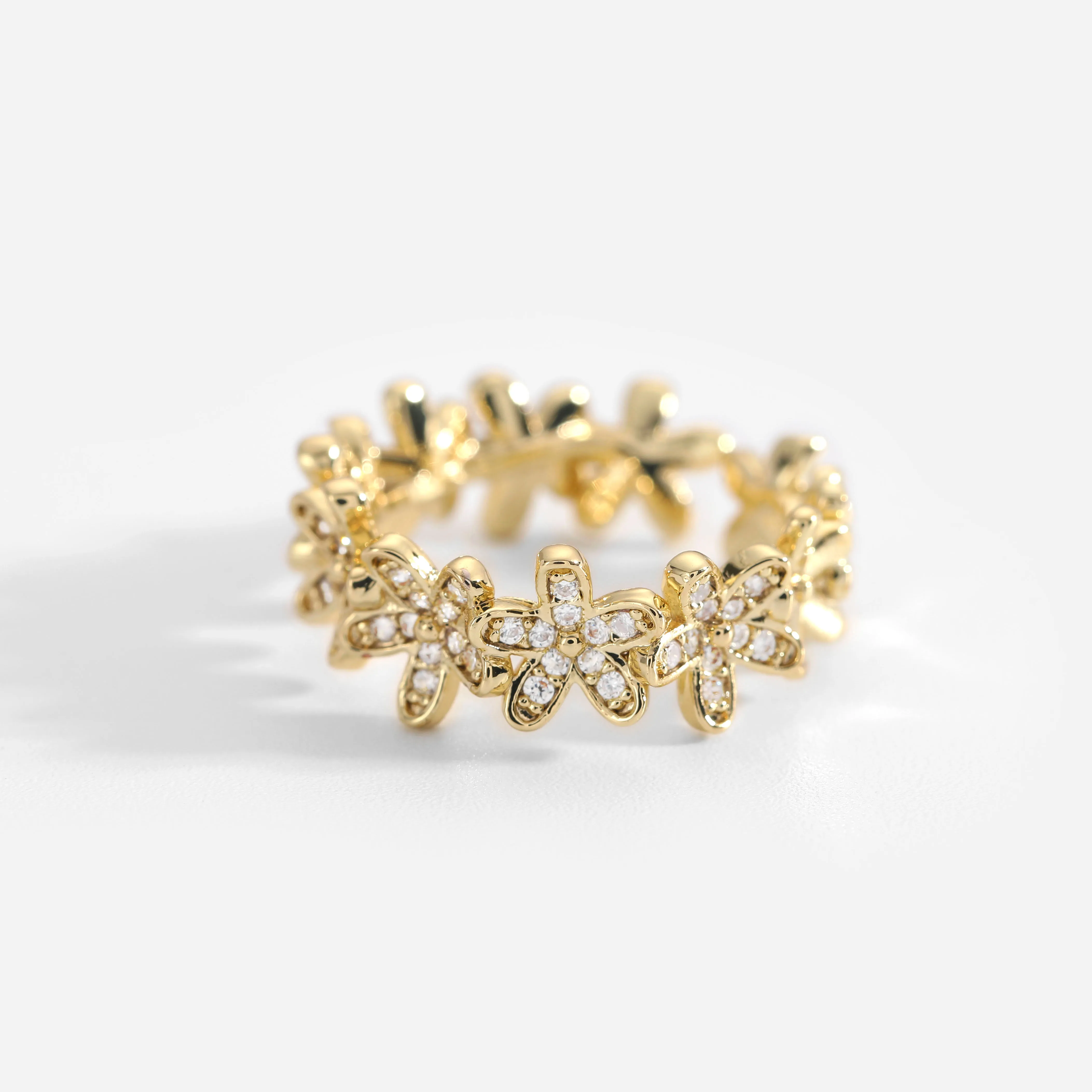 Новое поступление, золотые кольца с цветком и цирконием для женщин, подарок, 18k, латунные медные Регулируемые кольца, ювелирные изделия, свадебные помолвки