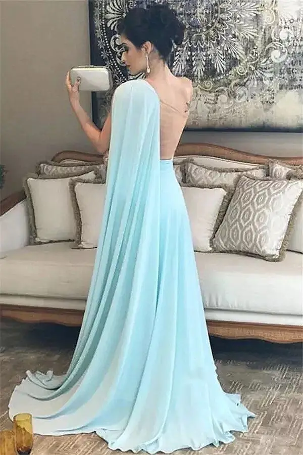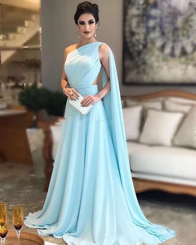 Элегантное светло-голубое платье для матери невесты, вечерние платья на одно плечо для выпускного вечера в саудовском, арабском стиле для свадебной вечеринки