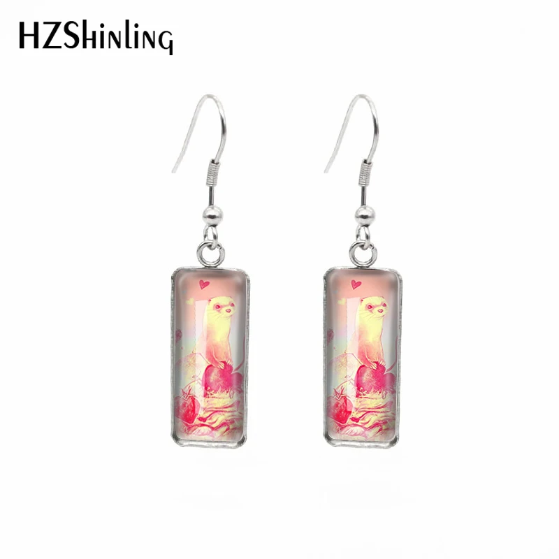 Новинка 2021 г., милые прямоугольные серьги хорька, серьги в виде рыбьего крючка с животным, стеклянный кабошон, ювелирные изделия ручной работы